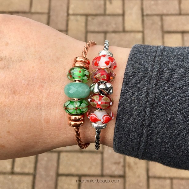 I get the Trollbeads blog now and I just saw one of your photos where you’re wearing the three bangles with the different green beads. The combination with the silver and copper is absolutely beautiful!!! I hadn’t really thought of green as a color I would necessarily want to get, but when I see it like that… WOW!