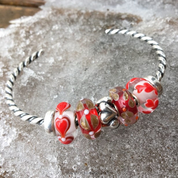 Next, I added in the other two red beads and put the Connected Love Spacer in the middle. I find myself using the decorative spacers all the time, these days.