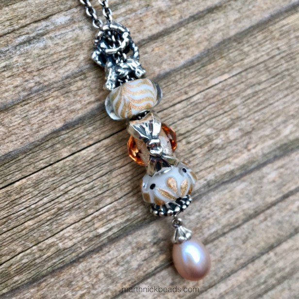 The Magic Bow works really well on a Fantasy Necklace. I’ve put the Love Goat on the top here and am going to keep it like this for the week. I dropped it beneath our porch while taking pics and had to get one son to crawl partway under to retrieve it!