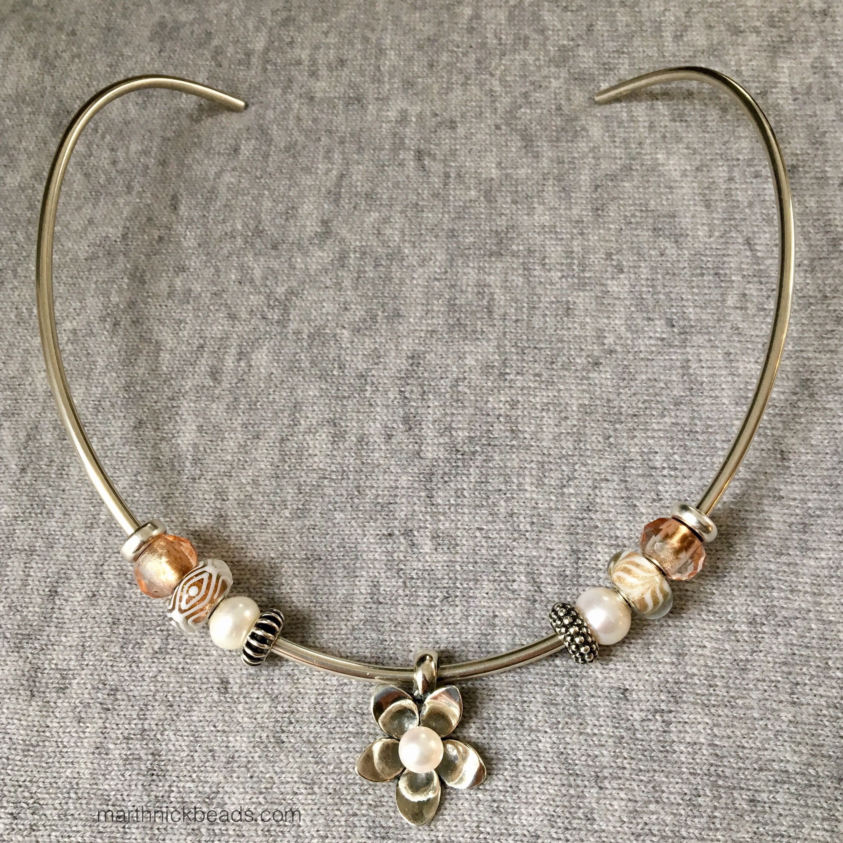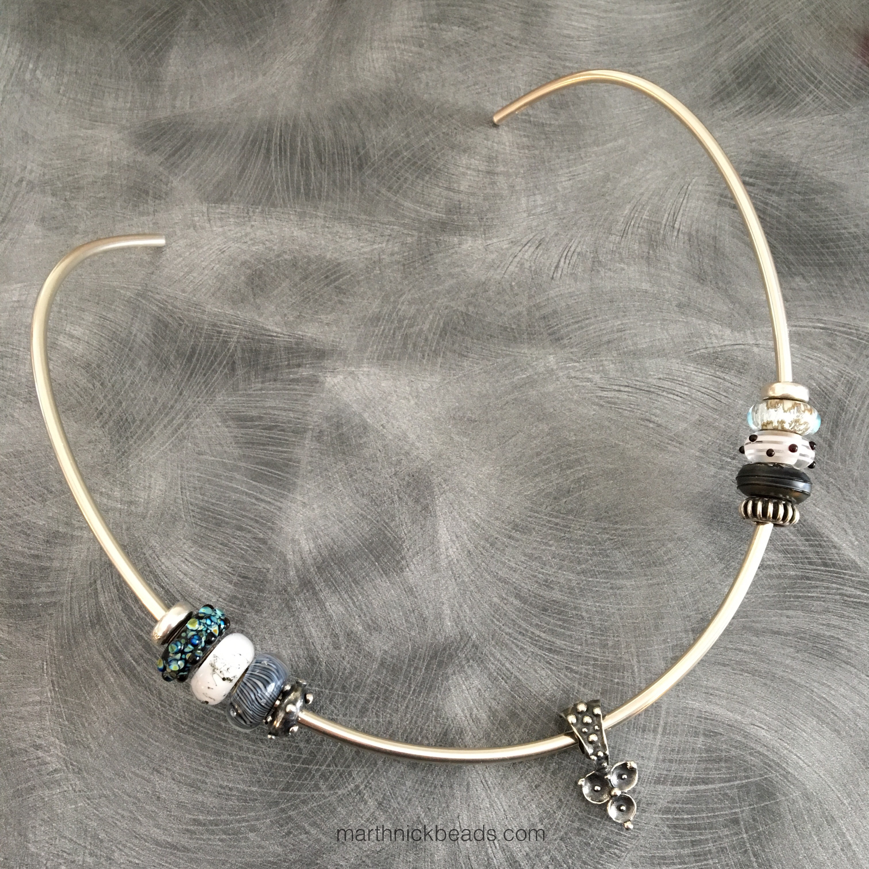 Here are a lot of the same beads but on the Neck Bangle. I’ve added in Milan on the left and Silver Mountain on the right.