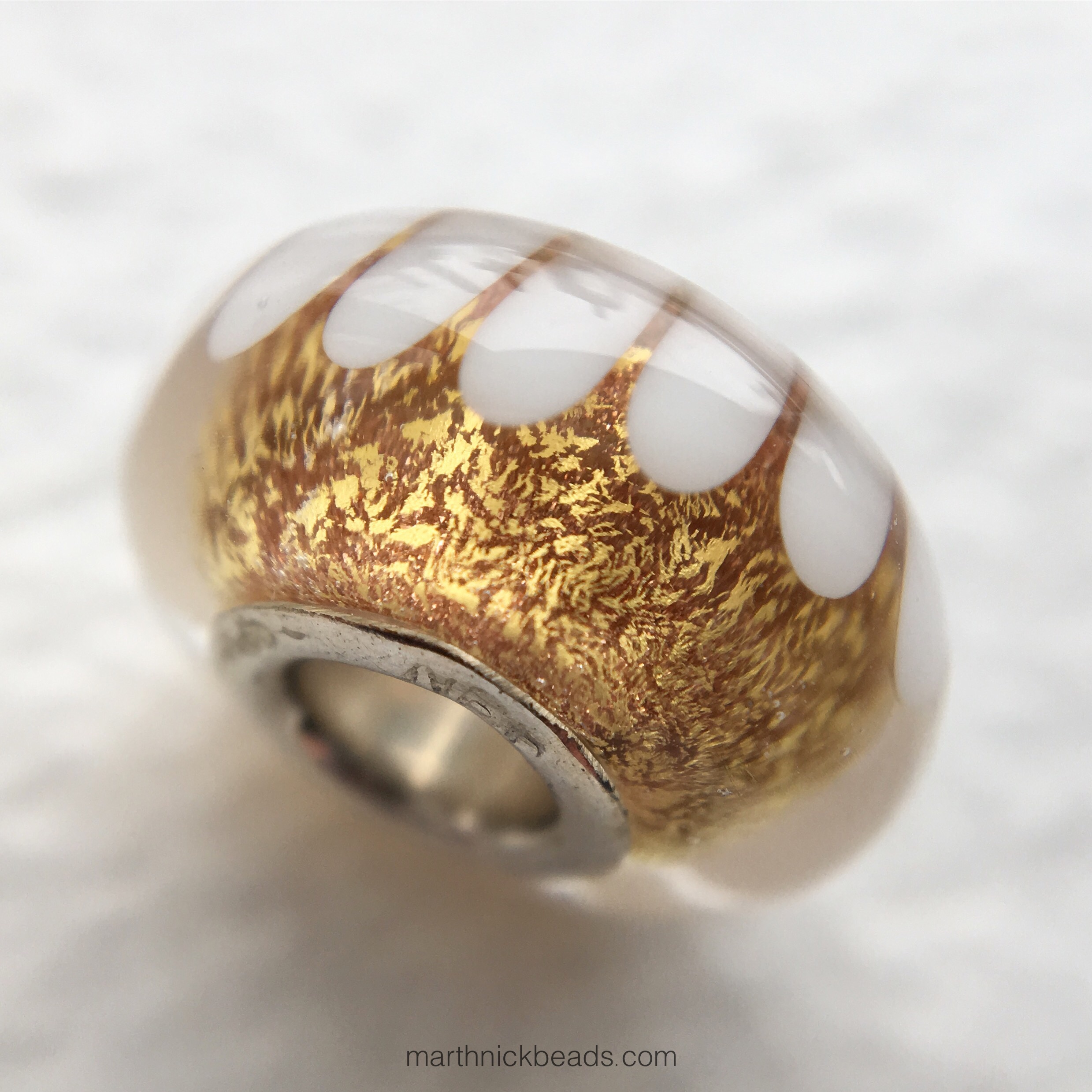 This bead is called Streams of Gold. I think it’s my favourite. It looks so lush and the price is reasonable at approximately $30 US. They have a large core and will fit on Pandora bracelets.