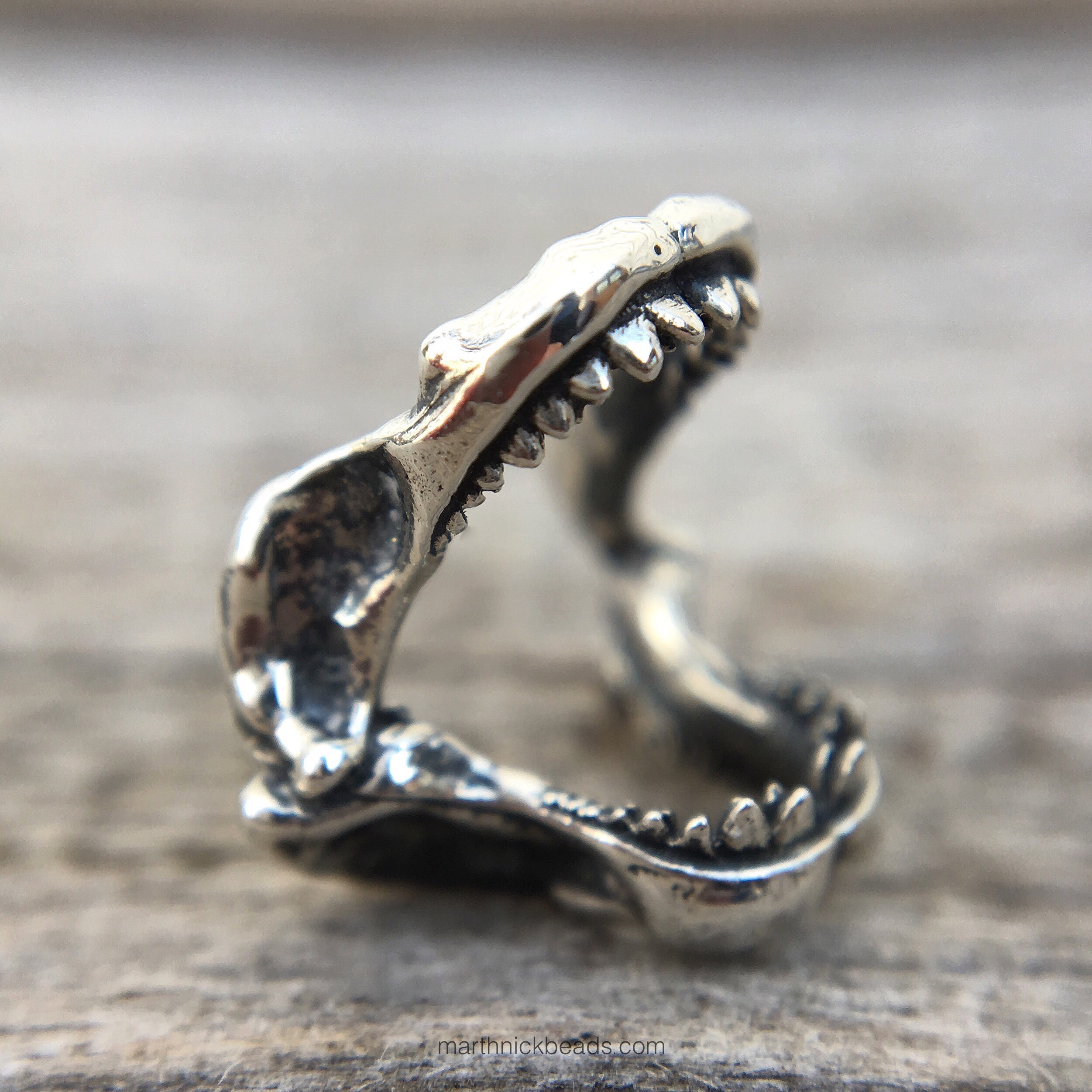 The last piece is totally my favourite and is called Baby Megalodon. The Megalodon is an extinct species of shark and is thought to have reached a length of 18 metres according to Wikipedia. Yikes! It’s also pretty small and is $30 USD/ $40 CAD. But even thought it’s small, the teeth are really well done in my opinion and it’s the easiest of the three to tell what it is when it’s on your wrist.