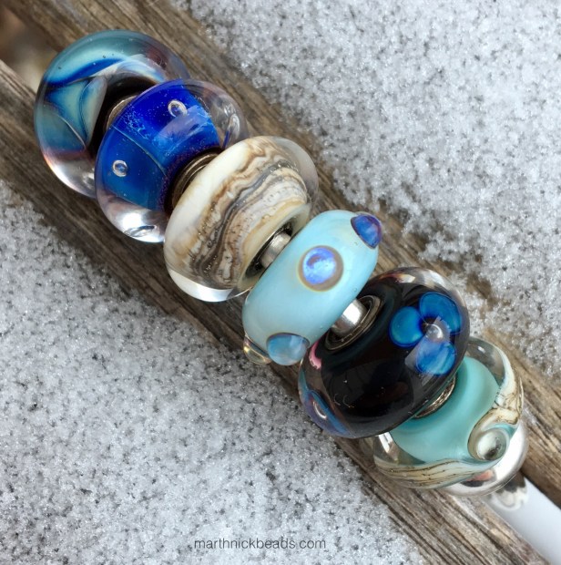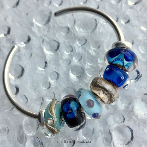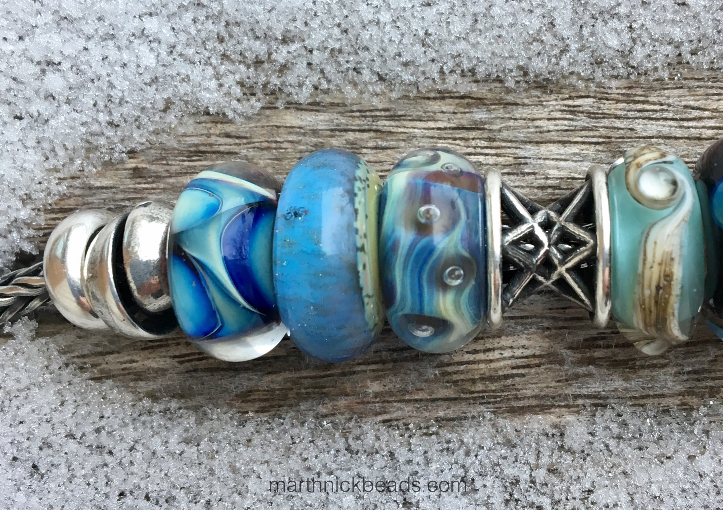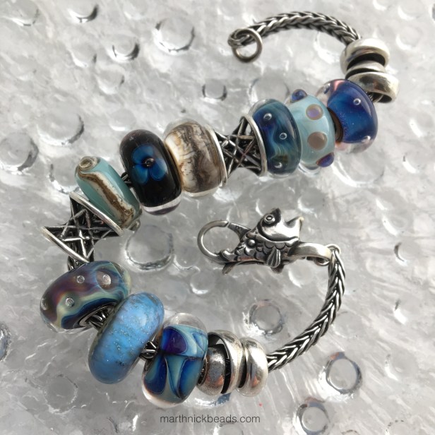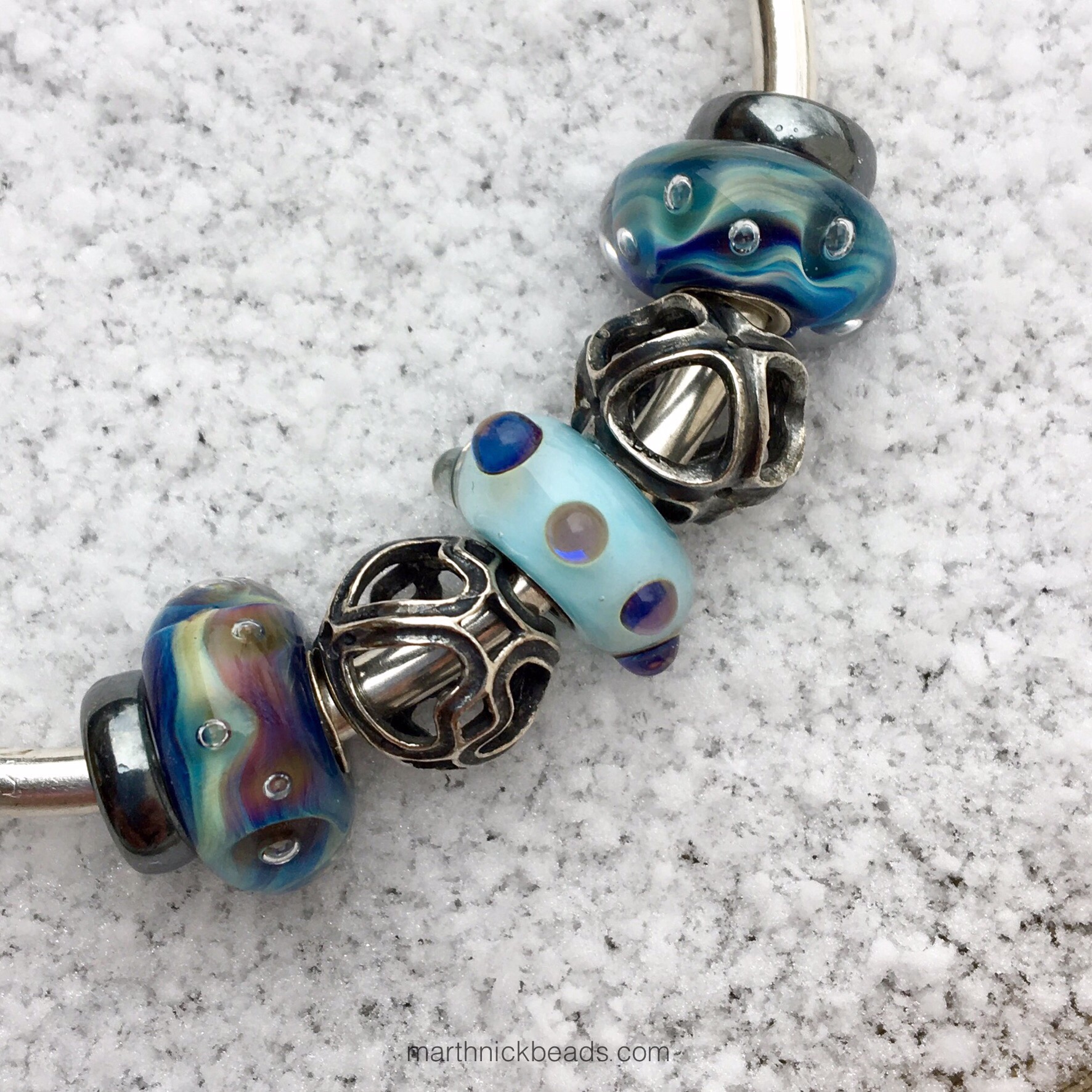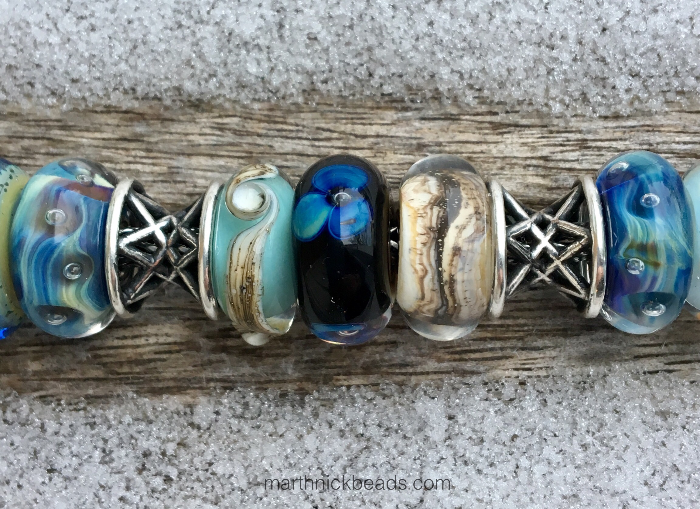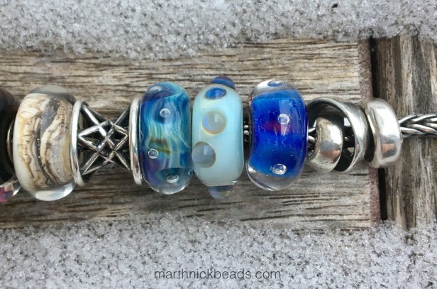 Martha, I’m so glad you got your Azure Bubbles after waiting so long! You really got good ones! I love the Cozy bead. I have one that I purchased at a store, but they only had one left. Mine isn’t as pretty as yours and I wish mine had more brown in it, but it has a pretty pattern to it and will have to do (until I find a better one??). It’s amazing sometimes how much variation there is in Trollbeads, both in height, width, color, and patterning. Pandora seems more consistent, but you can find variations there, too. It’s always fun to be at a store to hand pick from several, but we don’t always have that option. I’ve been to two stores that carry Trollbeads, one is 1 1/4 hours away and the other is 2 3/4 hours away. I am fortunate to have a Pandora store in my town. Great post, Martha, and beautiful designs and photos as always!