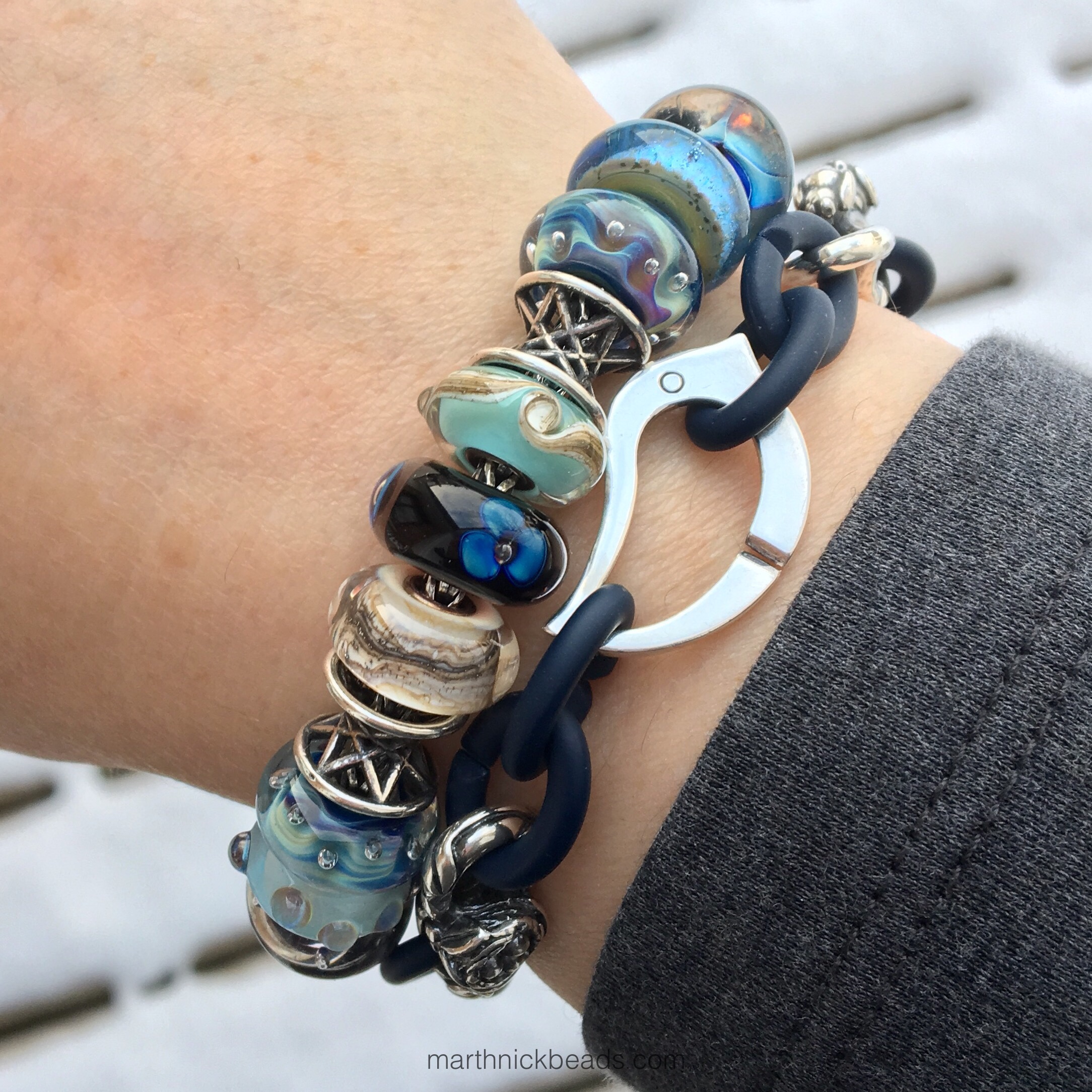 For a couple of days in a row I paired the bracelet with an X Link bracelet in the Steel Blue colour. Now, the trick for me will be to NOT keep ordering more Azure Bubbles! Does anyone else have an addiction to these or other beads? Tracy of @blackbootslonglegs collects Blue Deserts, for example. I think Azure Bubbles will become my ‘must see if I’m in a store’ bead.