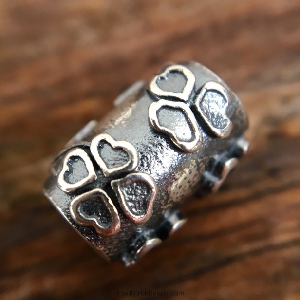 True Clover ($33 USD) is the smaller of the two barrel shaped beads. As we’ve come to expect with Alexey’s silver beads, the detail is so lovely.