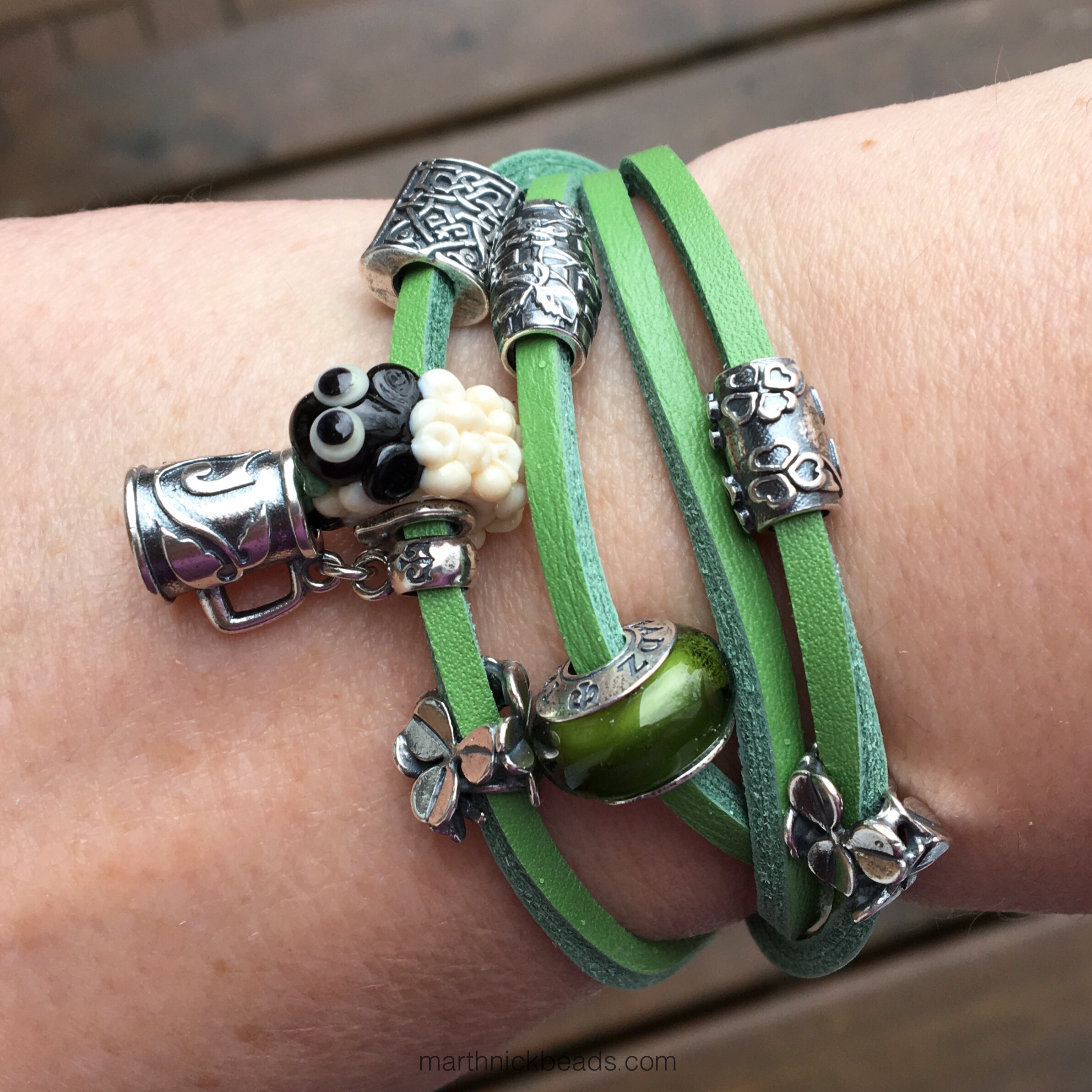 The latest collection from True Beadz is the St. Patrick collection and consists of three silver beads and two glass beads. I’d like to use the beads year round, so I thought I’d try to blend these beads in with my existing bead collection. The cute O’Sheep arrived quite bright eyed, having been off the beer for the duration of the flight from Russia. But look, he is clearly pleading for that beer stein to be filled up!