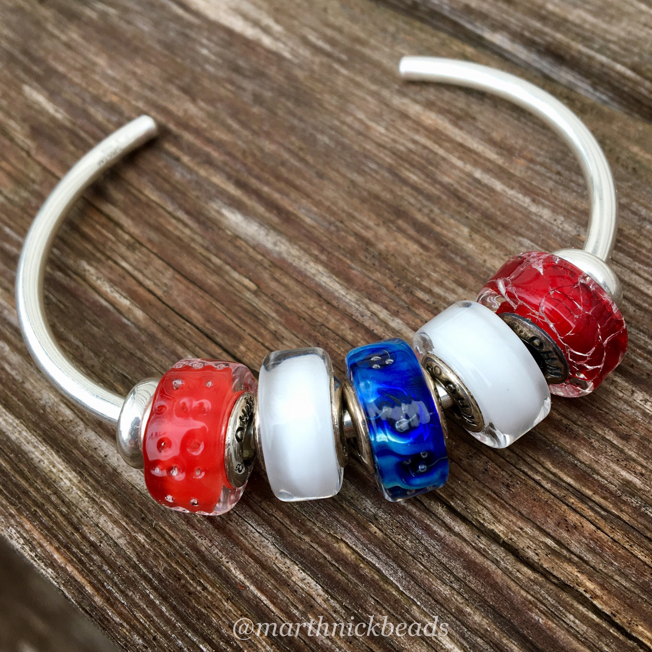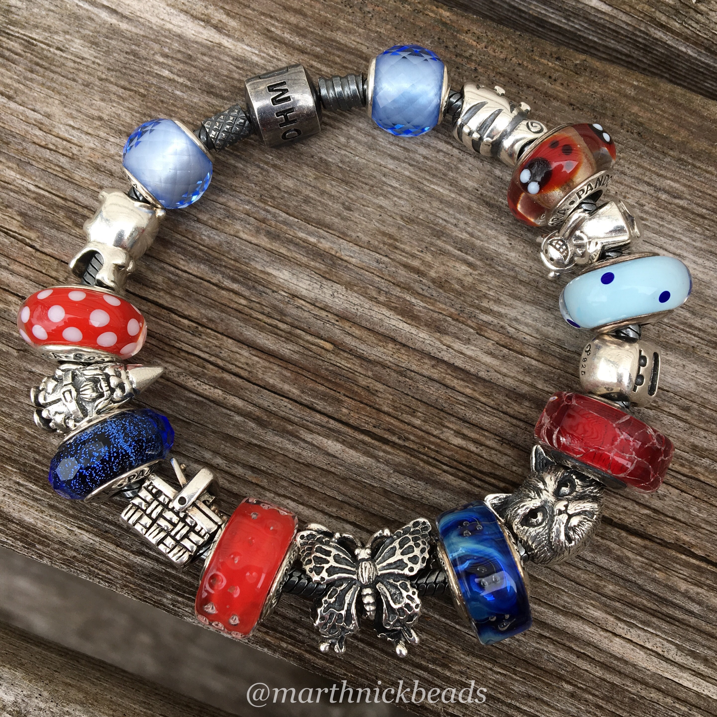 Hi Alex! The Picnic Basket is an older bead but so perfect for the upcoming summer season and I thought people might be interested to know about it. There are some tiny grapes on the top-so cute! I’ll have to look for some grape coloured beads to pair with it at some point. I also love the bangle you’re talking about. The reds and blues are so pretty together!
