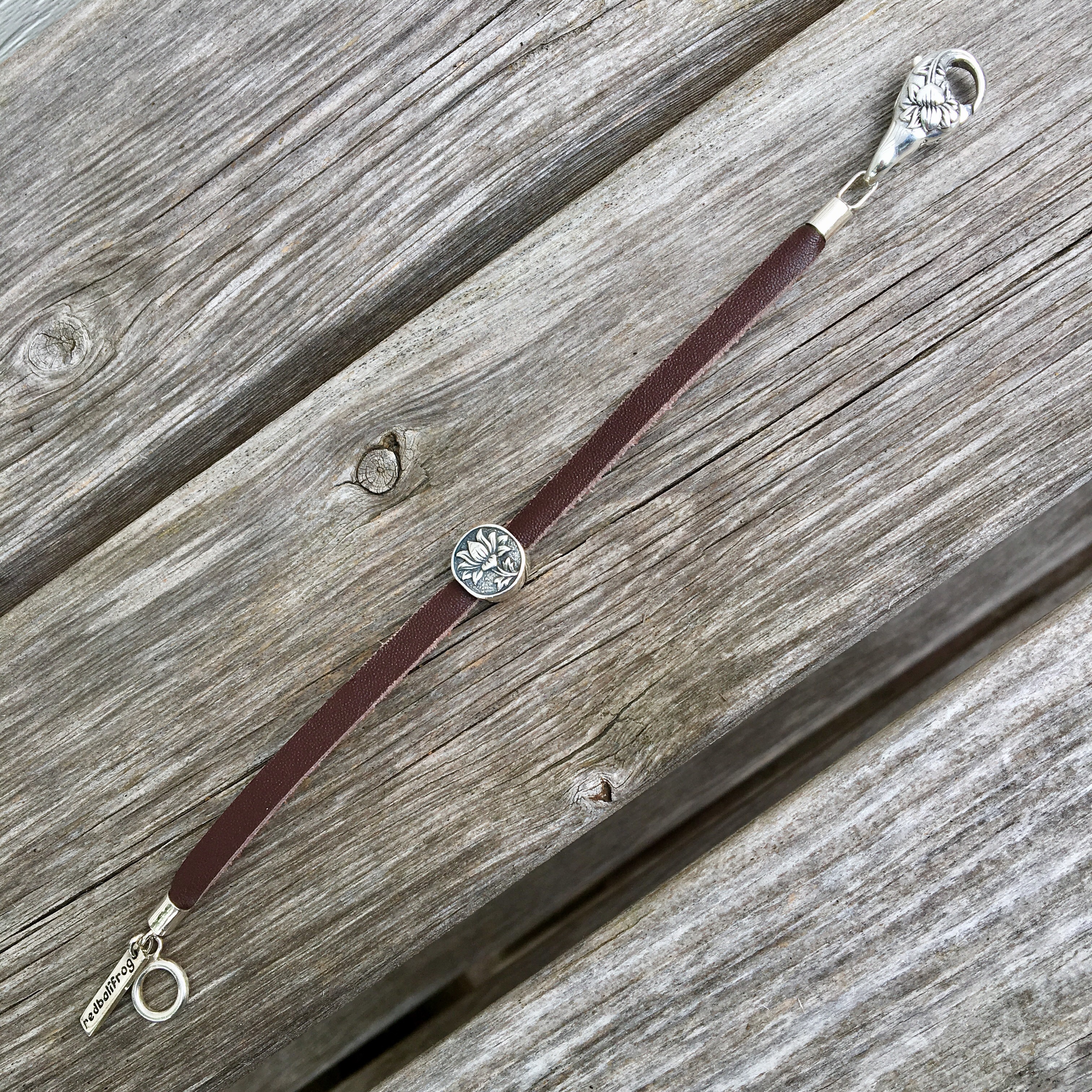 I have a couple of the Redbalifrog Leather Straps, so this lock will be perfect. The silver bead on here is Lotus Flower. This will be a great summer bracelet.