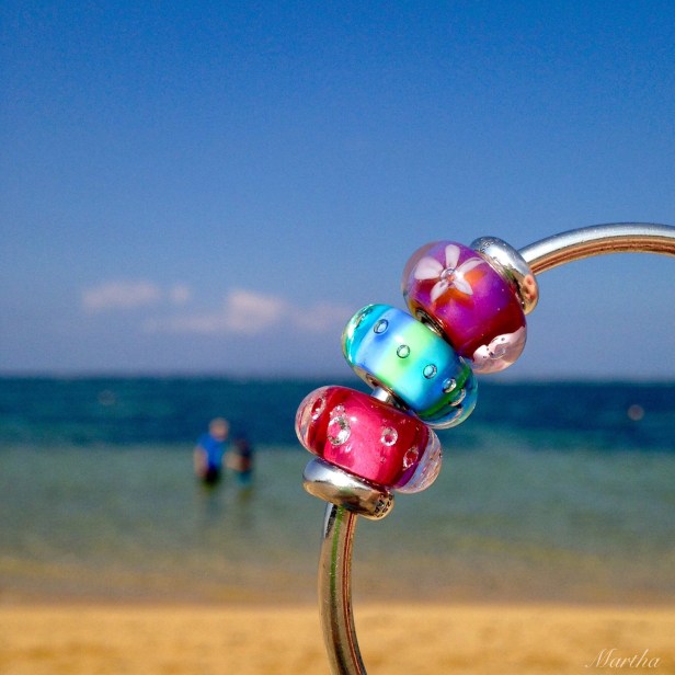 I made up a bracelet using all Redbalifrog silver with some Trollbeads, as a nod to my favourite bead picture of all time, taken in Bali. That’s Wayne and Patrick in the water.
