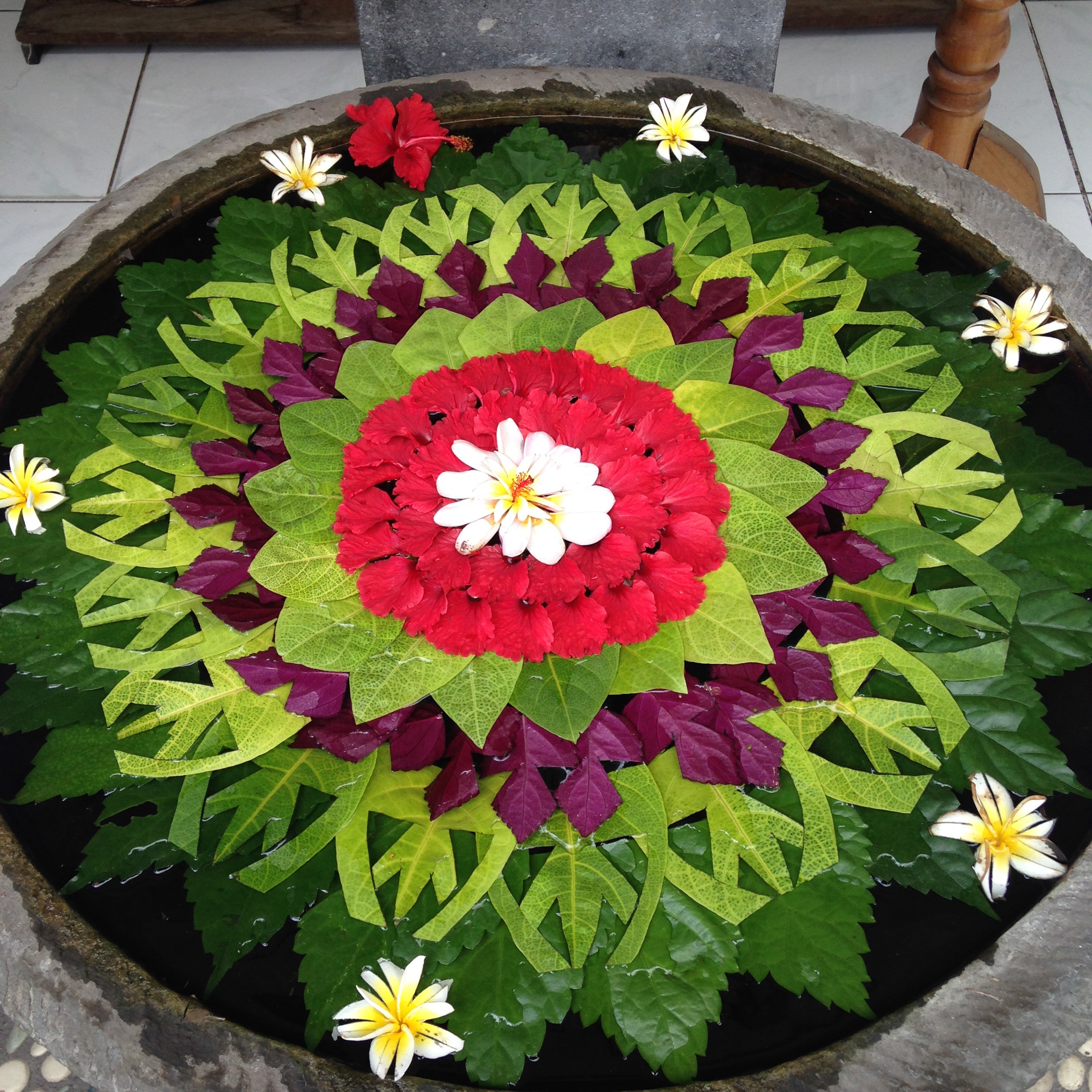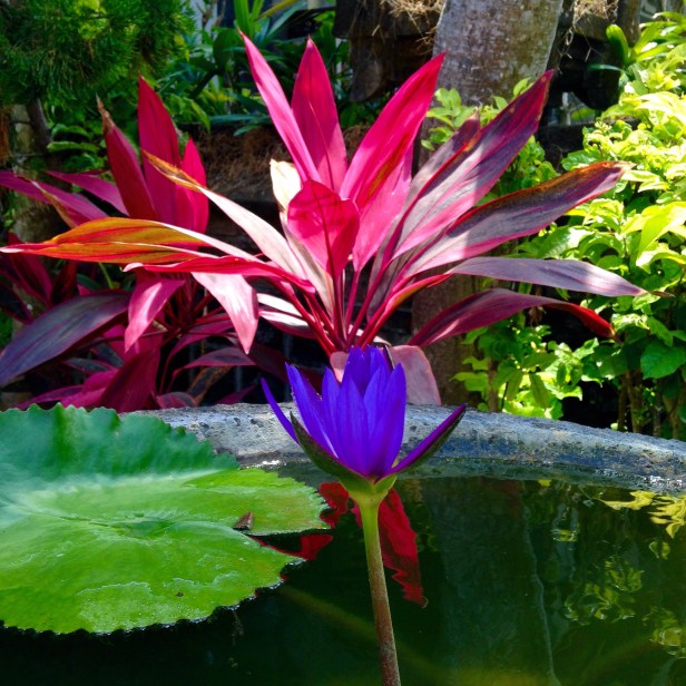 Now for some of the incredibly coloured flowers of Bali. The first photo is of a water decoration outside of a shop in Ubud. Amazing! Ubud is full of artists’ studios and craft shops and there is SO much to look at.