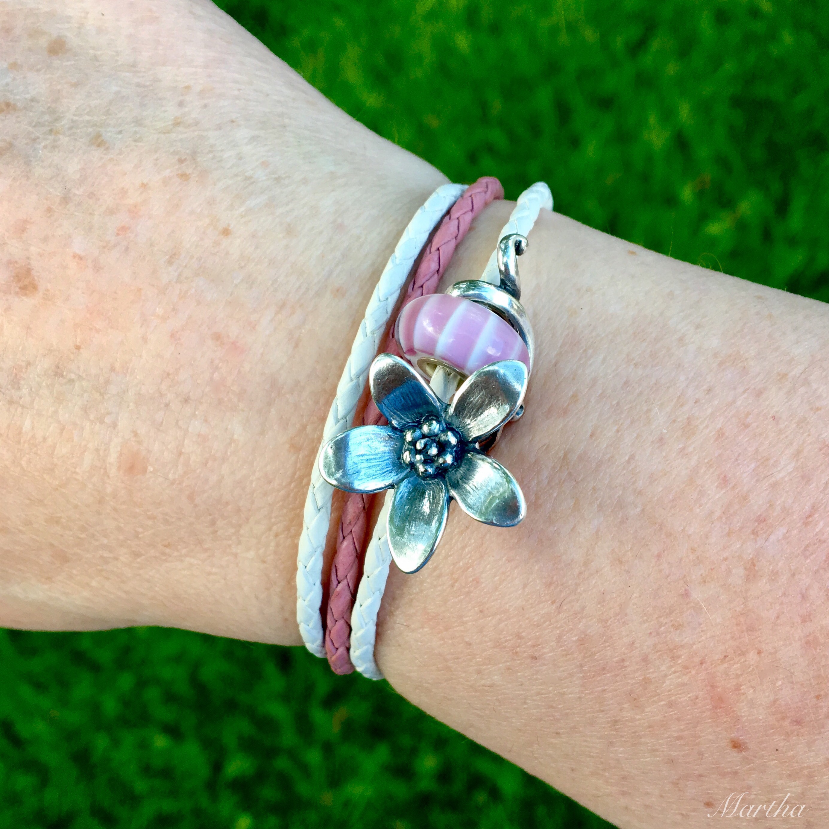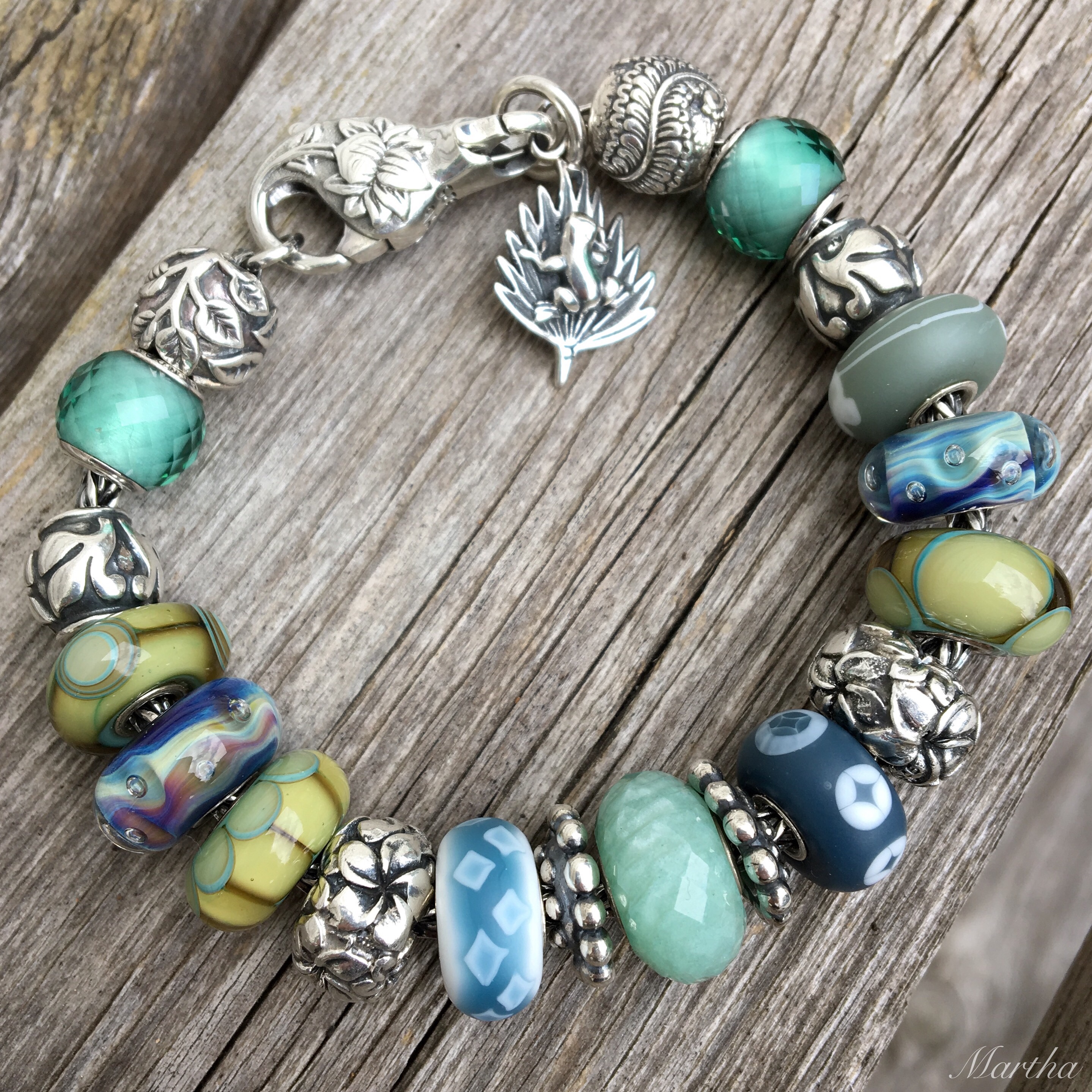 Hi Martha, First of all I love all the designs you’ve done. I don’t know that I would necessarily have chosen a white bracelet but it looks rea!lly pretty. I need to get that Anemone Pendant! On your full bracelet could you please tell me what the frog in the leaf is? Because I need that too! I’ve tried to find a Sock Monster but no luck there.