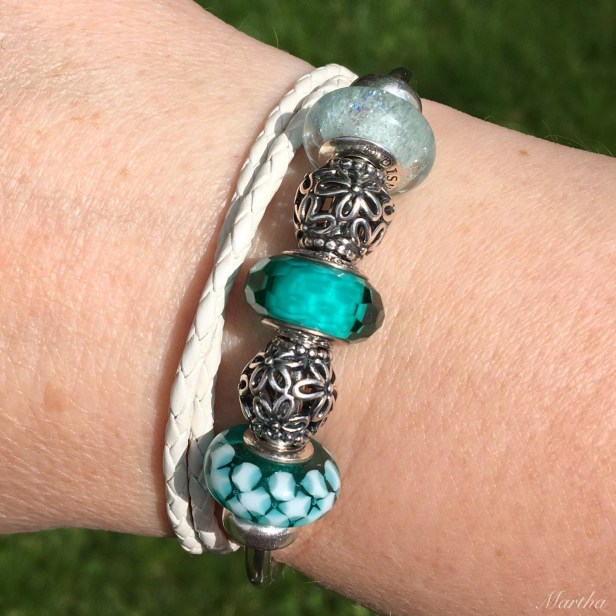 For this combo I took the Trollbeads Universal Unique off its purple leather bracelet and used it here, in the middle.