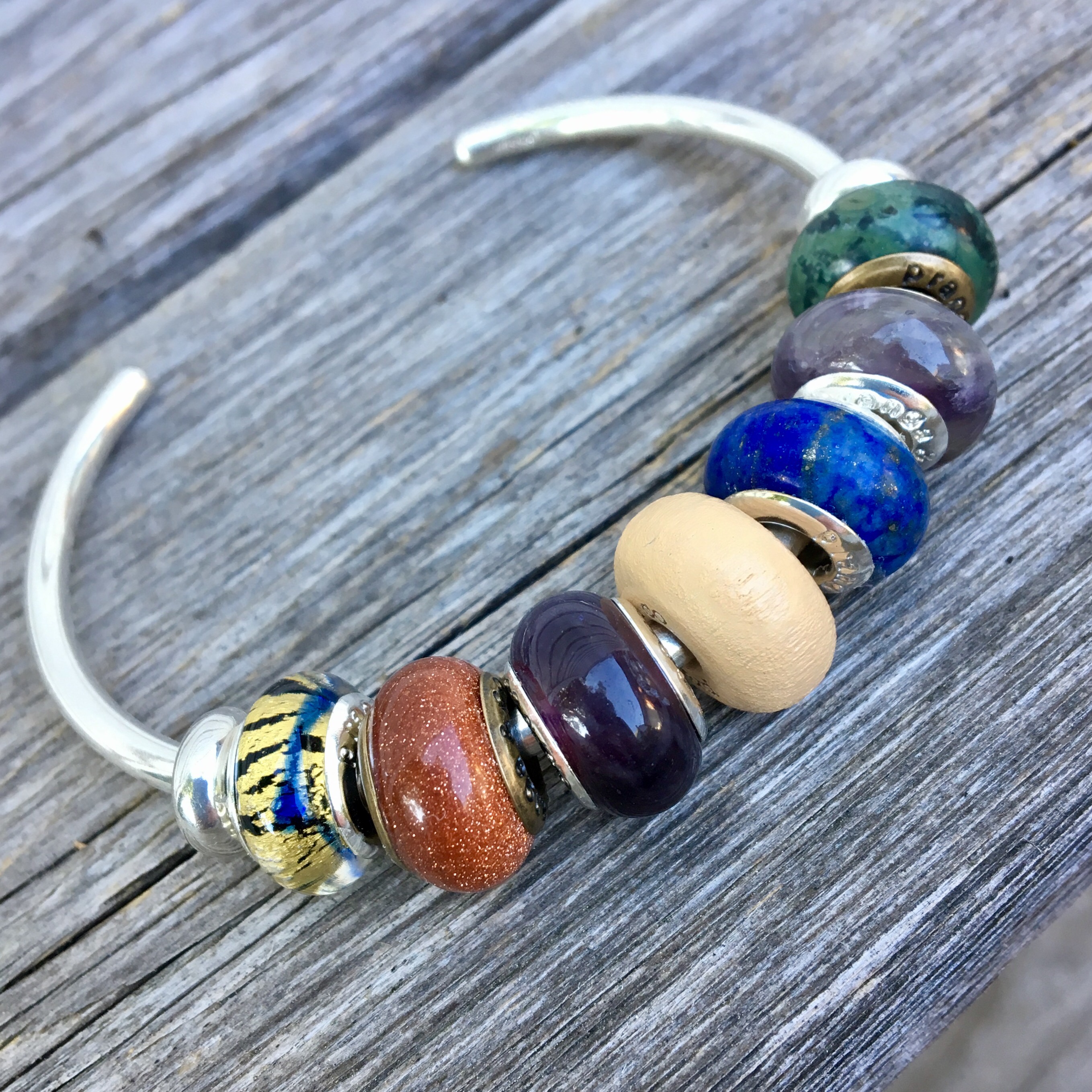 It should be noted that you can use your own beads if you want to. Most Trollbeads won’t fit but Pandora and Ohm Beads will, as seen below. The website states that beads will need to have a 4.5mm core to fit on.