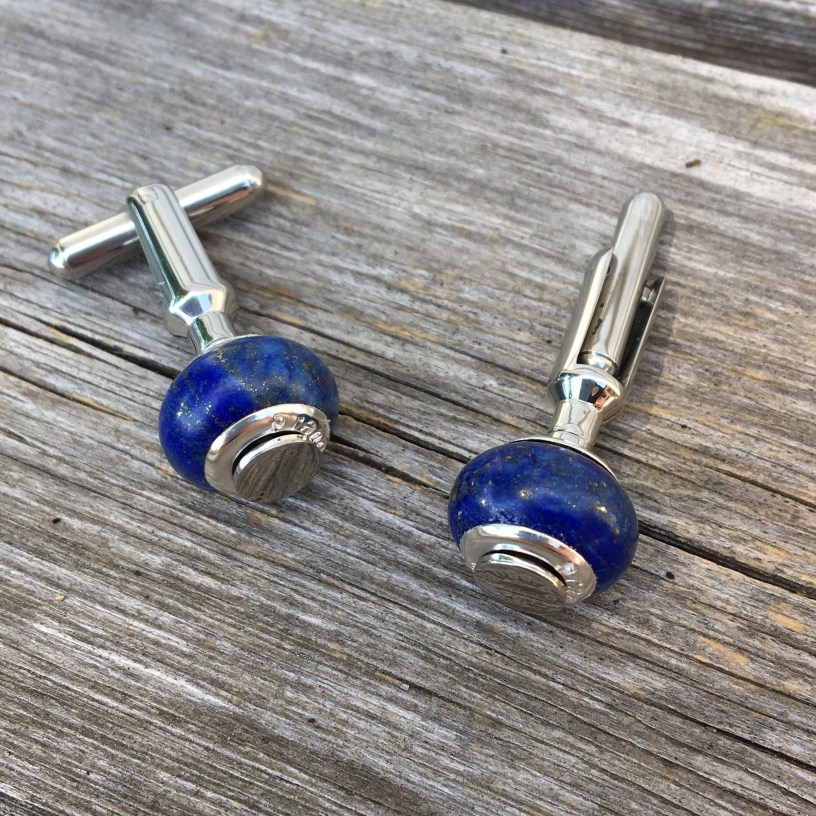The prices range from $25-$35 CAN, which is approximately $18-26 USD. You get a pair when you order either the ankers or the cuff links plus then there is $10 off if you buy the set, so what you see below, with the Rod of Inanna (Lapis Lazuli) ankers, would be $65 minus $10, so $55 CAN (about $40 USD).