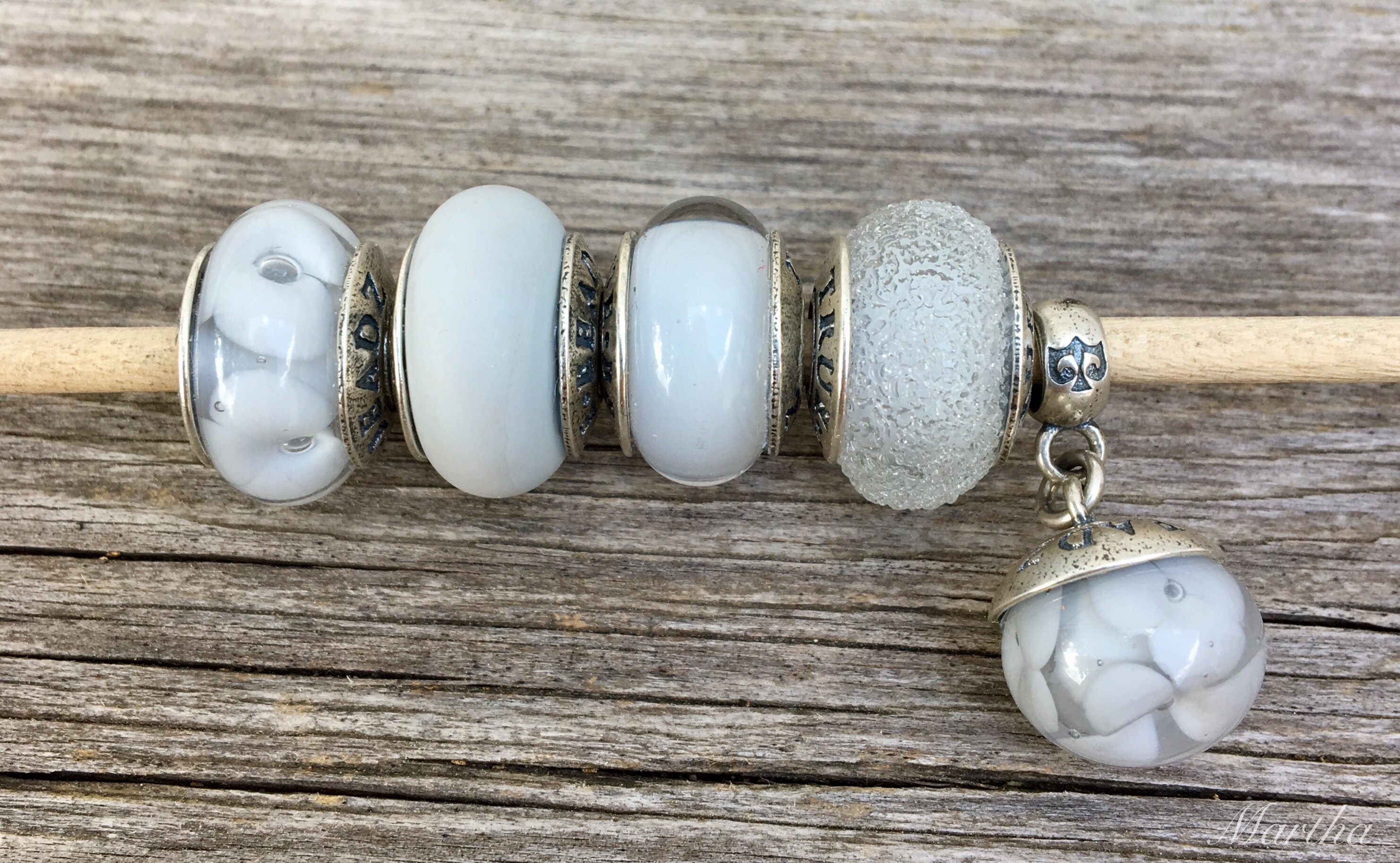 Love your photos, as always, Martha! The new glass color is so versatile, and I liked seeing the different ways you used it. I think the Dragon Shadow silver is my must-have from this collection, though. Thanks for the heads up about which bracelets they fit on, and the size comparison photo was really helpful.
