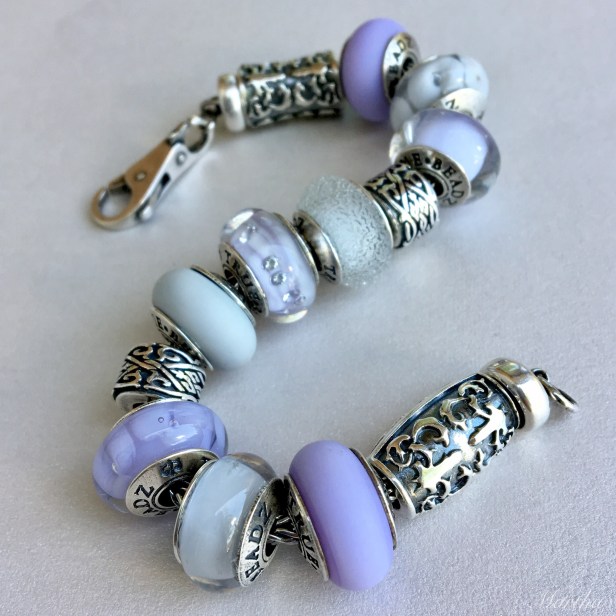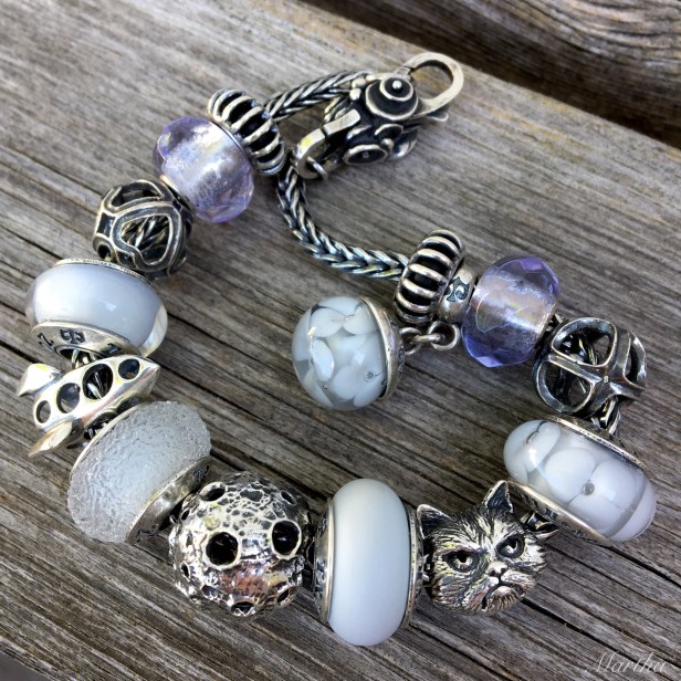 Lastly, I made a fun Grumpy Cat goes to the moon bracelet. I thought the Shadow colour made me think of walking on the cold, bleak moon. The Trollbeads Lavender Prisms add a bit of brightness.