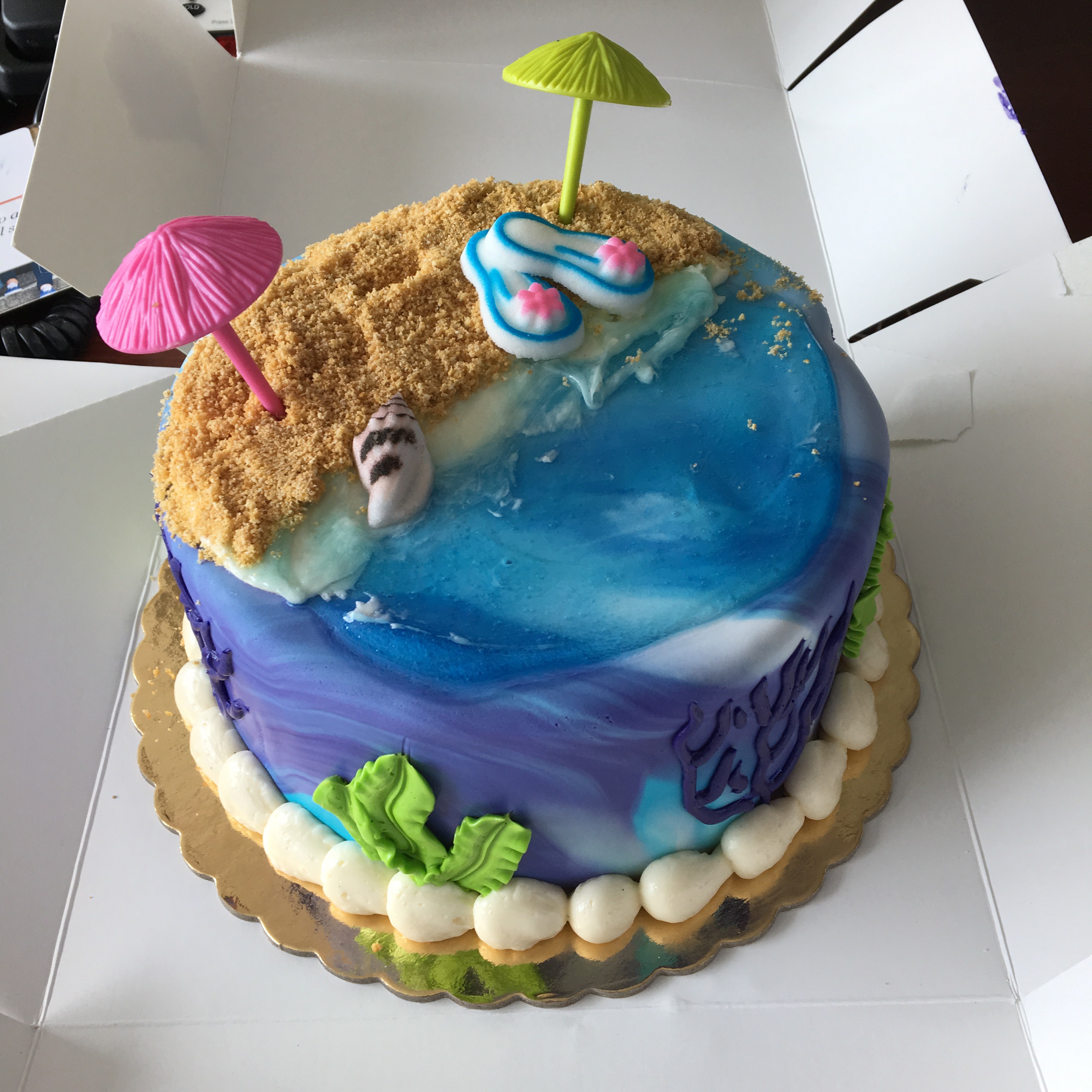 We had pre-ordered a Beach cake as my son really liked the episode where they made a really large one. The Cake was vanilla and chocolate inside and really tasty.