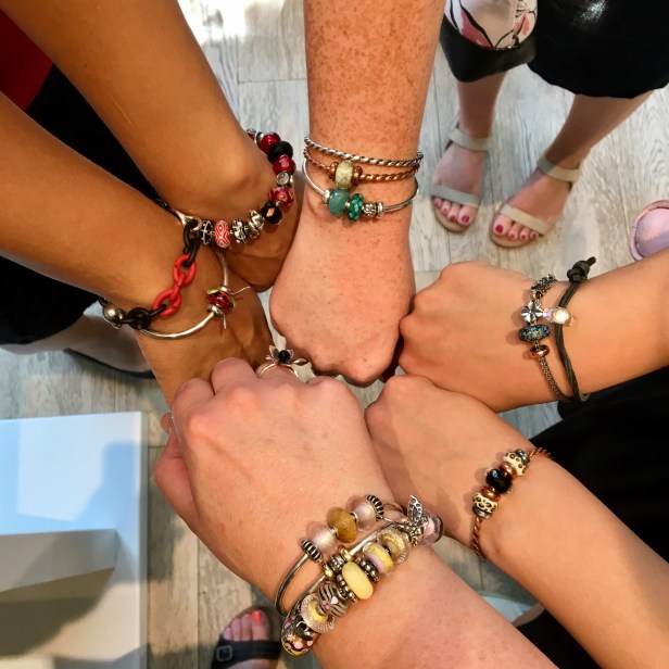 I met some more ladies, including April’s friend Karyn, bead collector Carol and some of the ladies from the TrollbeadsUSA office. Here are the wrists of Kim and the TrollbeadsUSA ladies! I love Kim’s red and black combos!