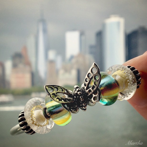 And yesterday I took this photo while on the ferry boat to Staten Island. I am really enjoying the Dancing Butterfly Spacers with the Vision of Light bead in between.