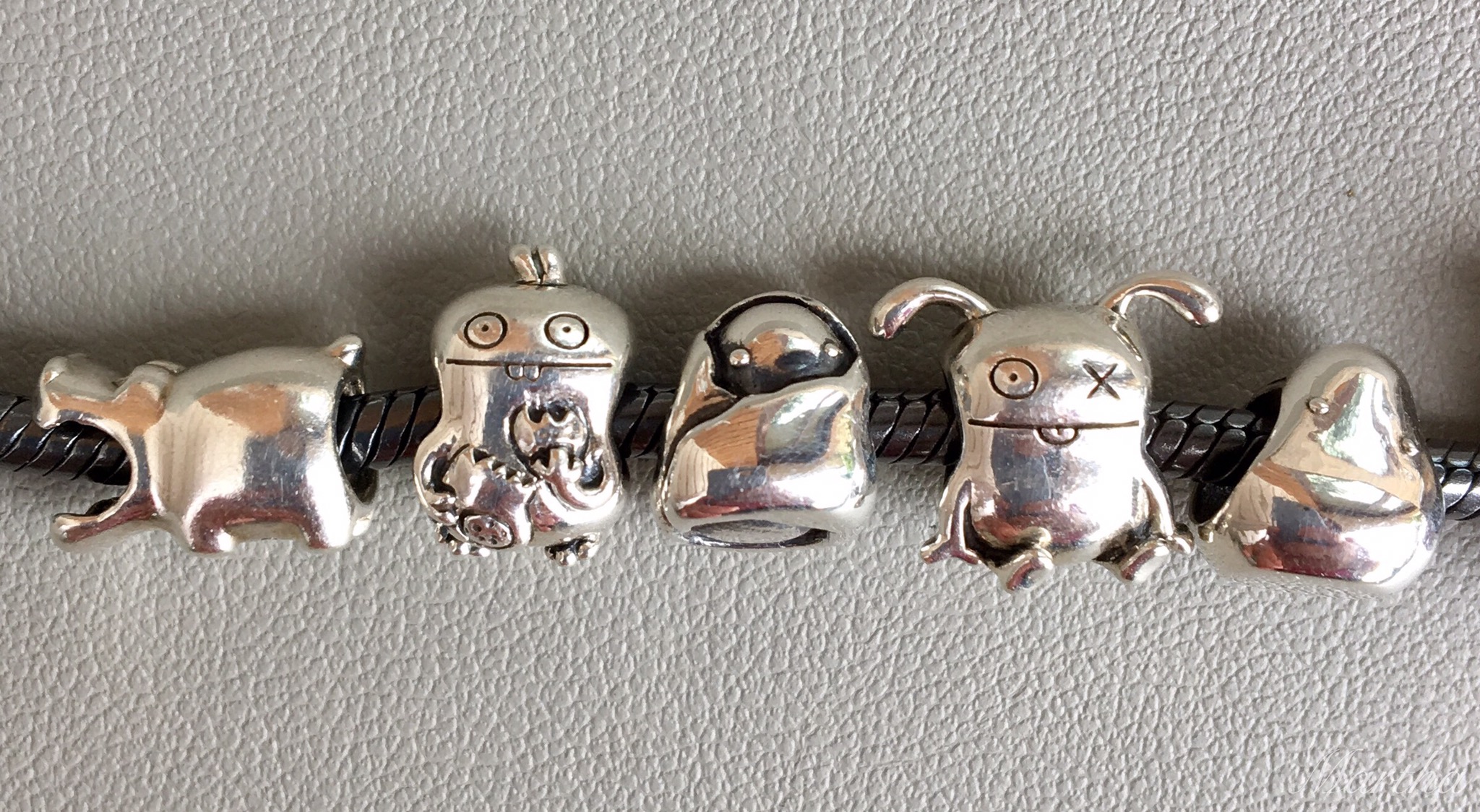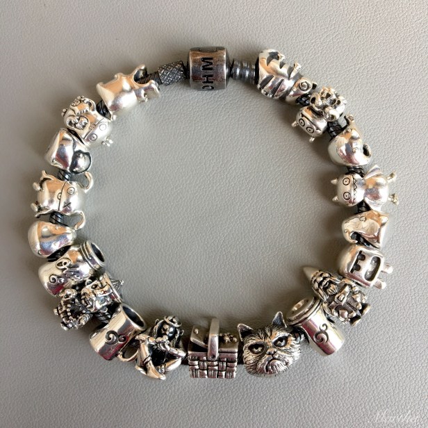 Keeping with a theme of drinks, here is a bangle using all four beads from the Holiday Drinks 2.0 collection.  Left to right they are Mulled Cider, Hot Chocolate, Cold Milk and Eggnog. Sock Monster, being a bit high maintenance, likes to order an extra hot, grande, half caff, 4 shots, extra foam, soy Cinnamon Dolce latte with a drizzle of chocolate syrup when at Starbucks.