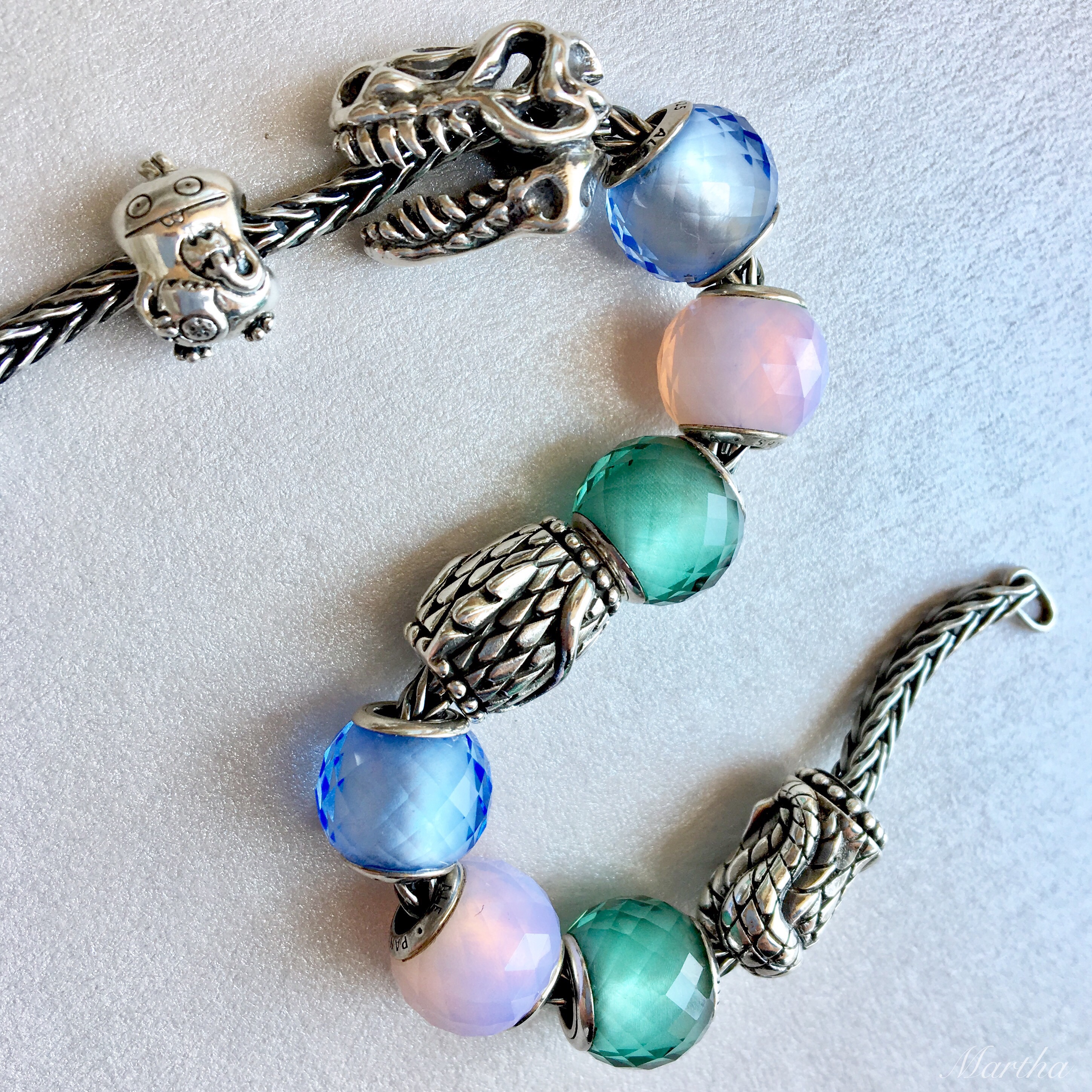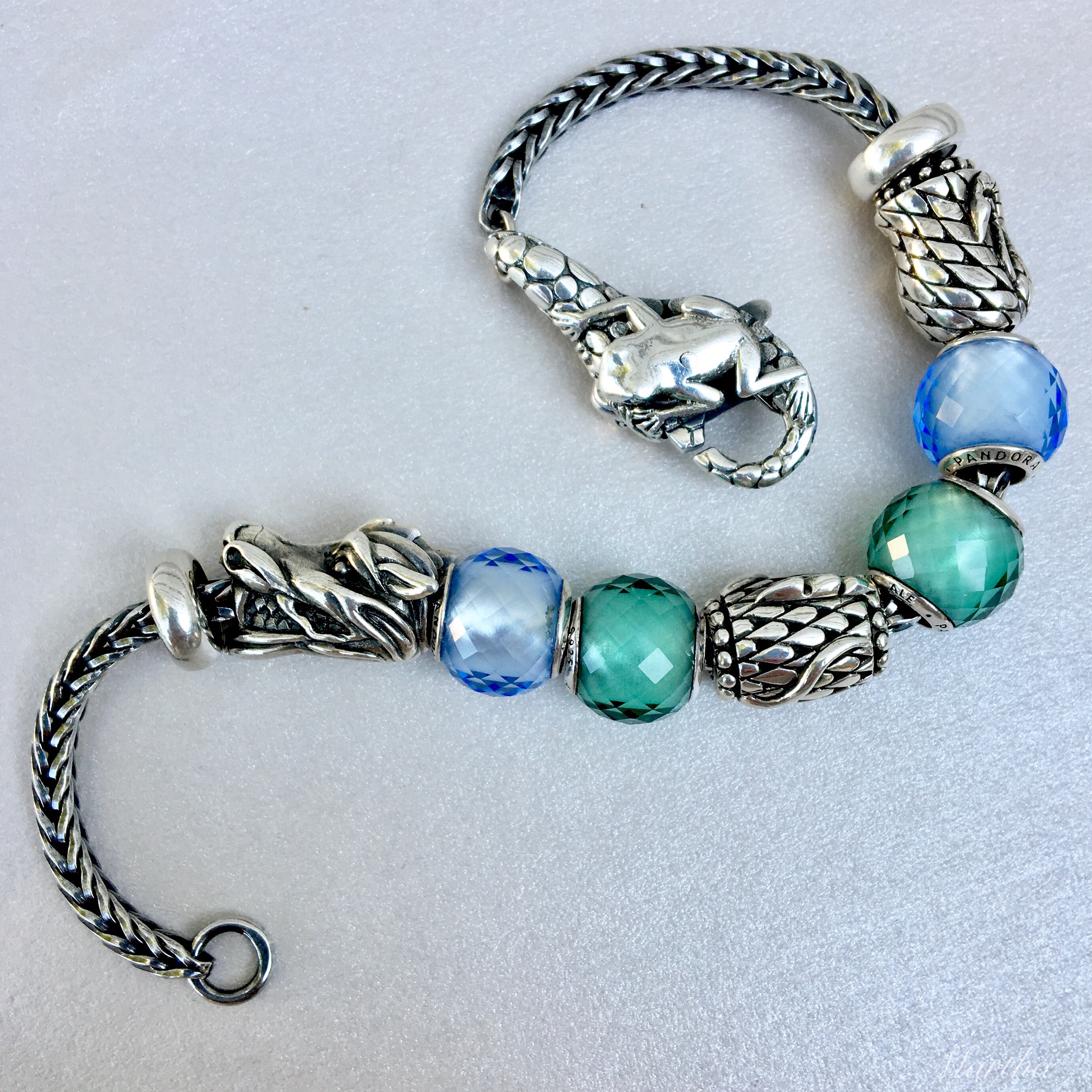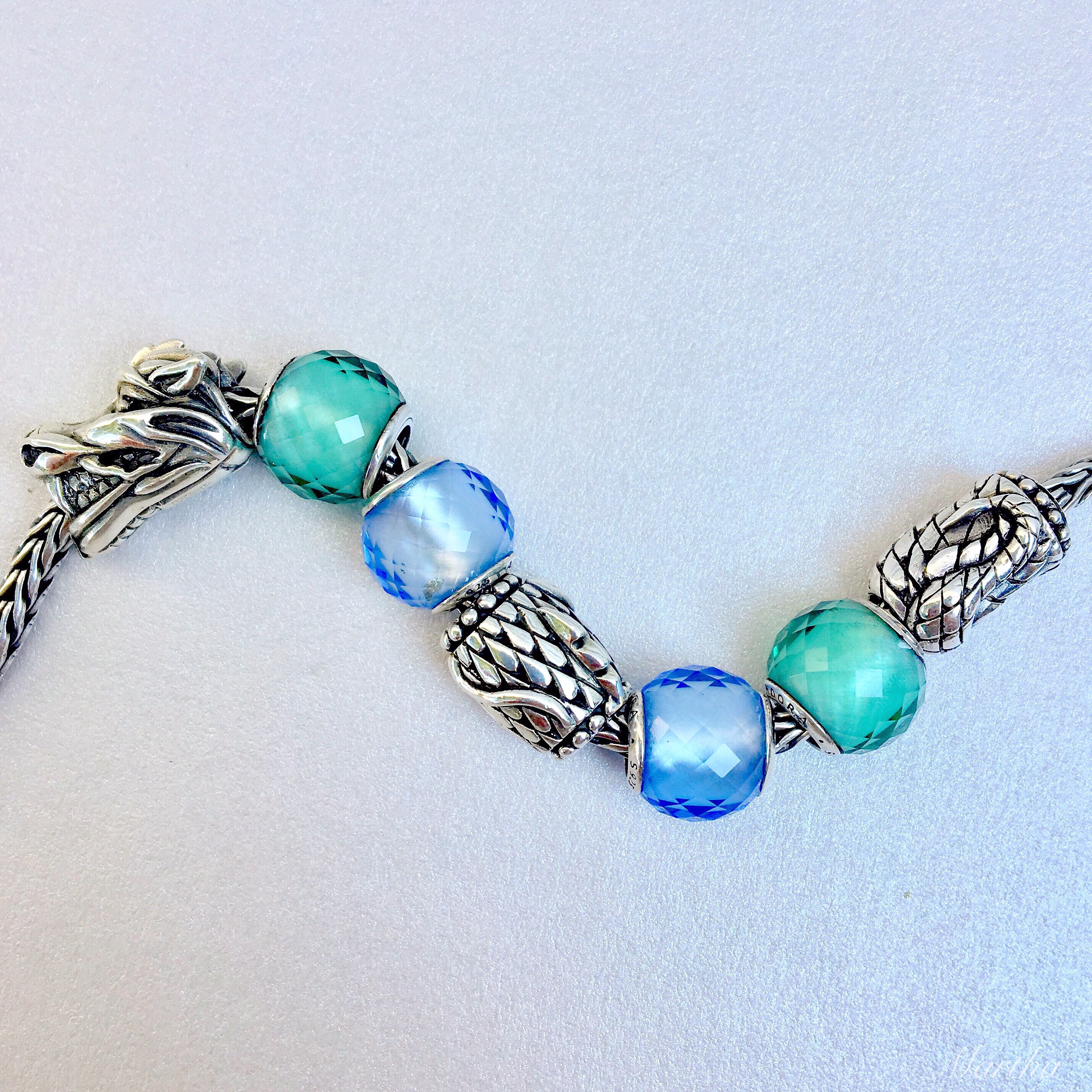 My preference for these beads is to use them with Pandora Petite Facets so that it looks like a sleek dragon.