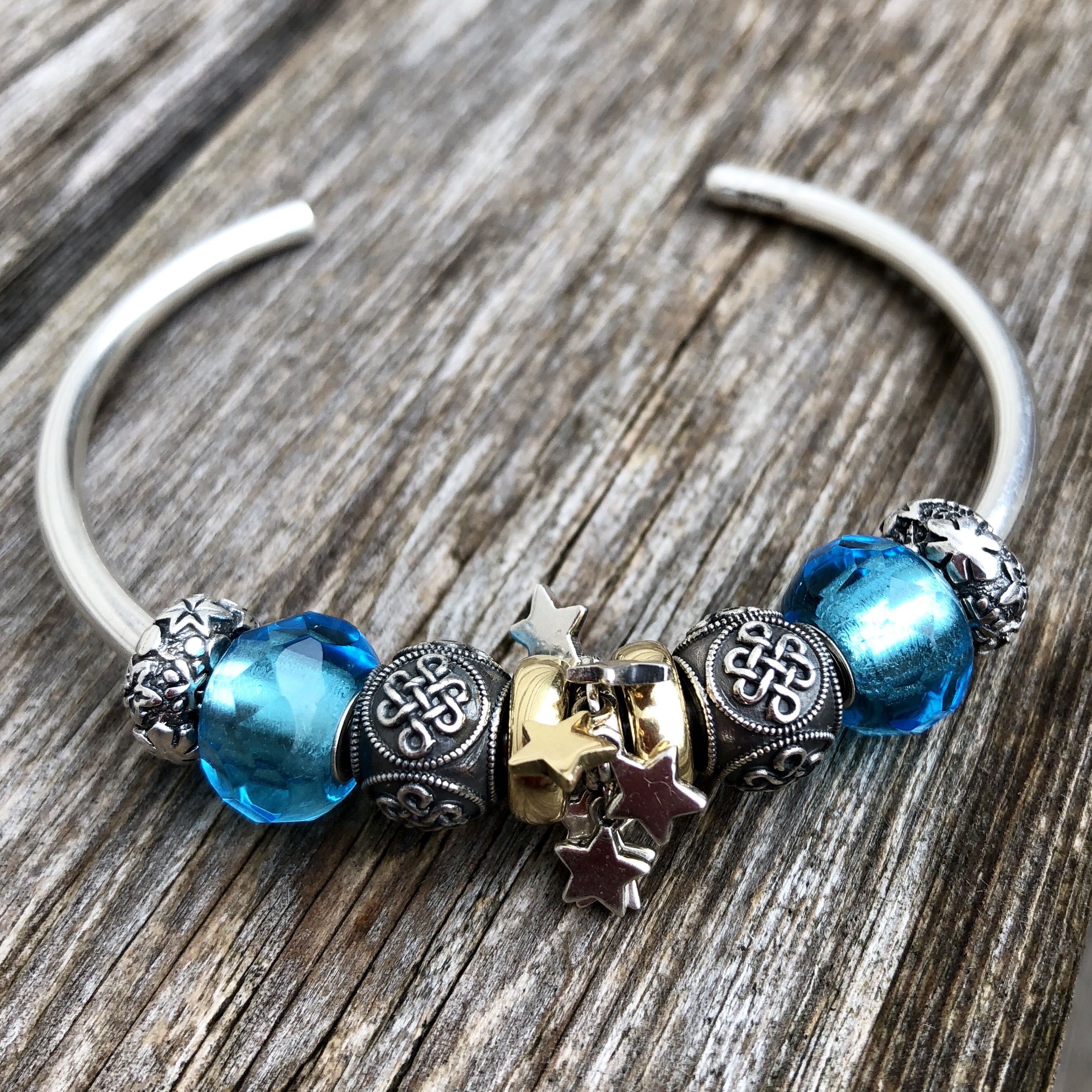 Blue has been popular with me lately. I really like this bangle using Trollbeads Blue Prisms and the Ohm Beads Lucky Stars from Star Bijou.