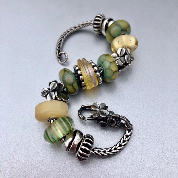Trollbeads USA has some lovely starter sets out right now and today I thought I’d have some fun playing around with the Yellow Jade. The starter sets include the Yellow Jade Bangle (copper) for $75 USD and the Blue Chalcedony Bangle (silver) for $145 USD.