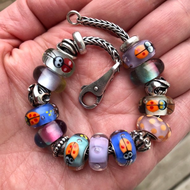 Hi Suzanne! Yes, Iโm not an insect lover either, but ladybugs are so cute. And like you I also love the other beads too. There is something about the way the light moves through them that makes them so pretty.