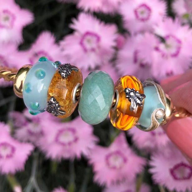 Hi Martha! I love the maple syrup colored one and the yellow one on your bangle. I have a silver bead called Bee on Hive that might go well with these. On a side note….will Cheez-Its be a part of your trip?