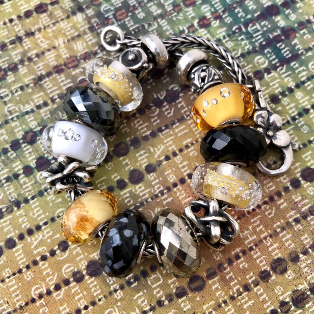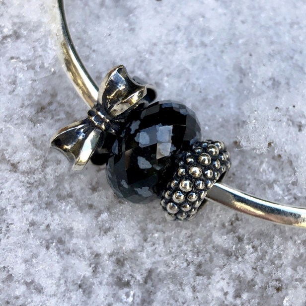 Today is Black Friday in the USA and Trollbeads has made a bead for the occasion called Snowflake Obsidian Facet ($65 USD). There are lots of variations to the bead but the one sent to me from TrollbeadsUSA is quite dark and I love it.
