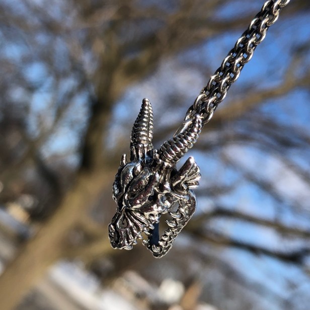 Ultimately I’ve decided that for me, the Dragon Skull sits best on leather if I’m not using it as a necklace. The OHM Whip Bracelet is perfect. I made a video for YouTube that shows one way to put the leather bracelet on. Here’s the link: