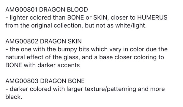 Oh my…I could see myself buying a couple of the glass beads. Definitely Dragon Bone & then Dragon Skin. The texture is amazing!