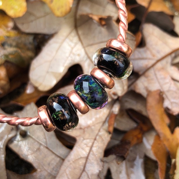 The Winter 2019 Collection, called My Sun, My Moon, My Stars comes out on Friday, November 8 and I have a selection of the pieces to show you today. Unlike last year’s Winter Collection which was very thematic with cookie cutter beads, this collection is much more suited to wearing year round. A lot of pieces from this collection go really well with copper, so if you have a bangle you might want to shine it up!