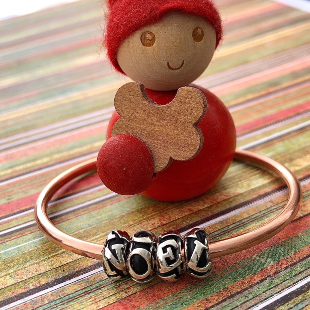 Here’s my only photo with a nod to Christmas, with my beloved little Finnish Elf. The letter spacers ($39 USD each) are really good looking in person! Now that I see that Kim Buck was the designer, I can understand why I like them so much as he’s one of my favourite Trollbeads designers.