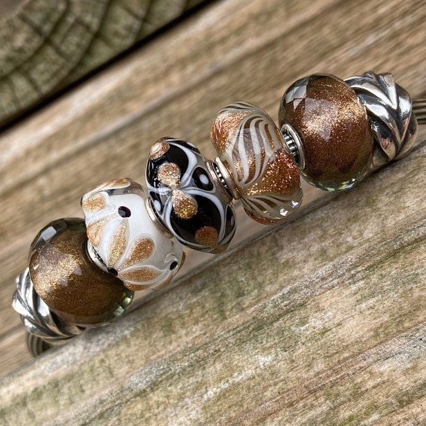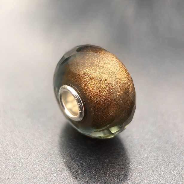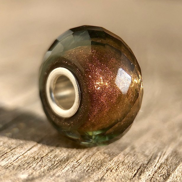 This year’s Black Friday bead is called Sense of Shimmer ($50 USD). This limited edition bead has loads of shimmer which is easy to see even in dull light. The green glass is very subtle and gives an earthy quality to the overall effect.