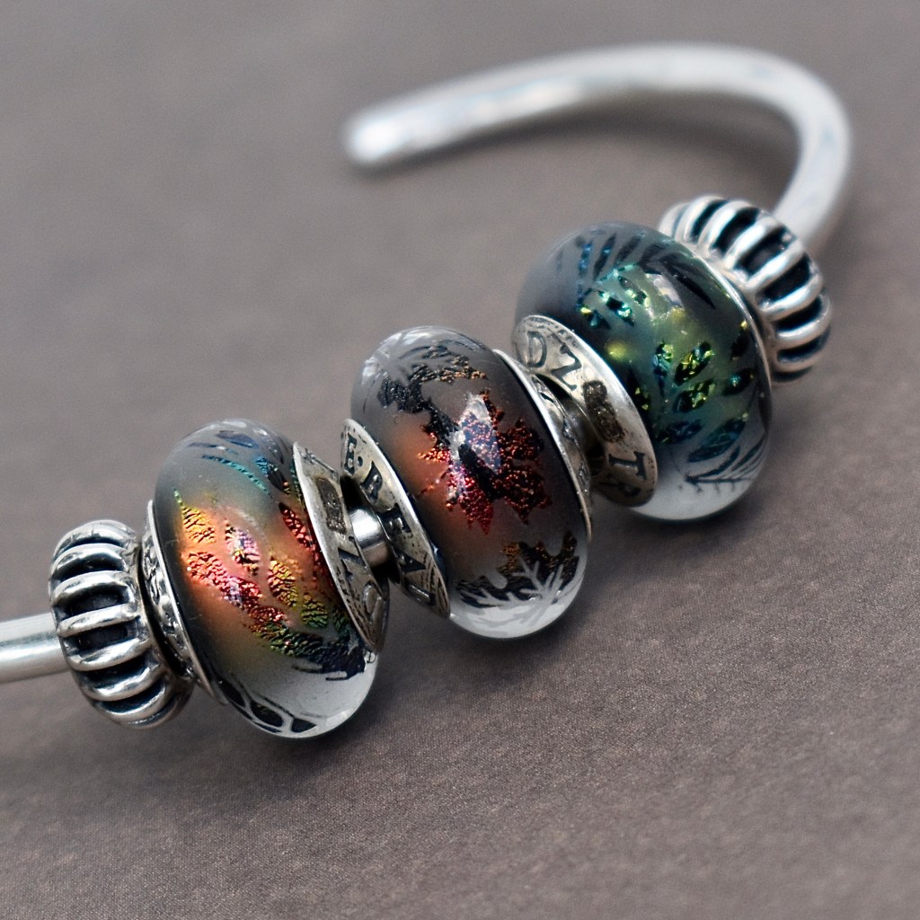 Lastly, I wanted to take a look at the etched beads. The Leaves bead and dangle are still available.