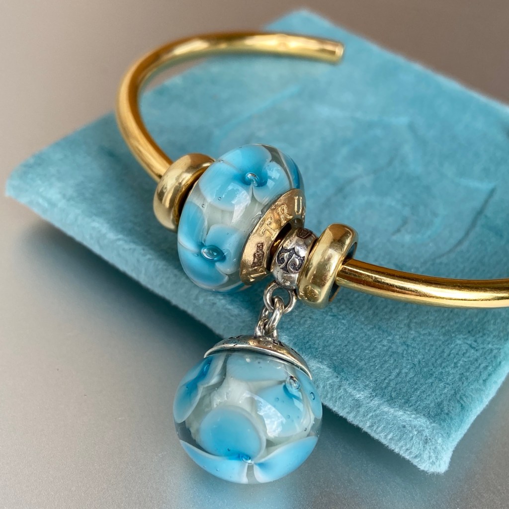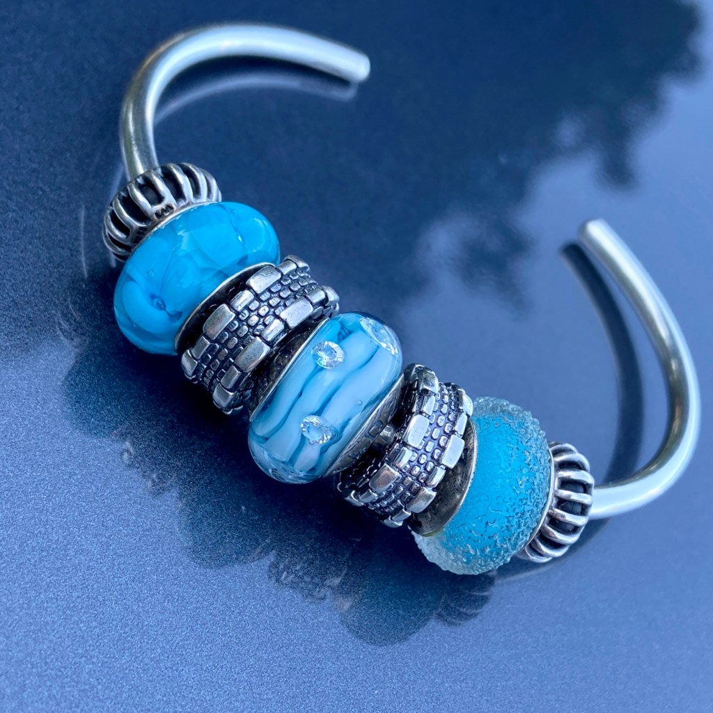 Next I tried a blue bangle, using a couple of retired beads in the Eastern Sea colour (I think!) and then two silver True Bridge beads.