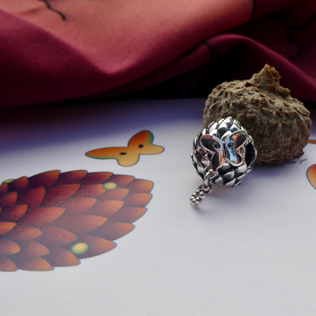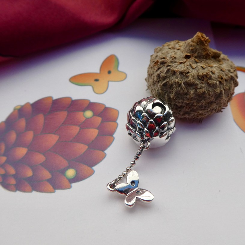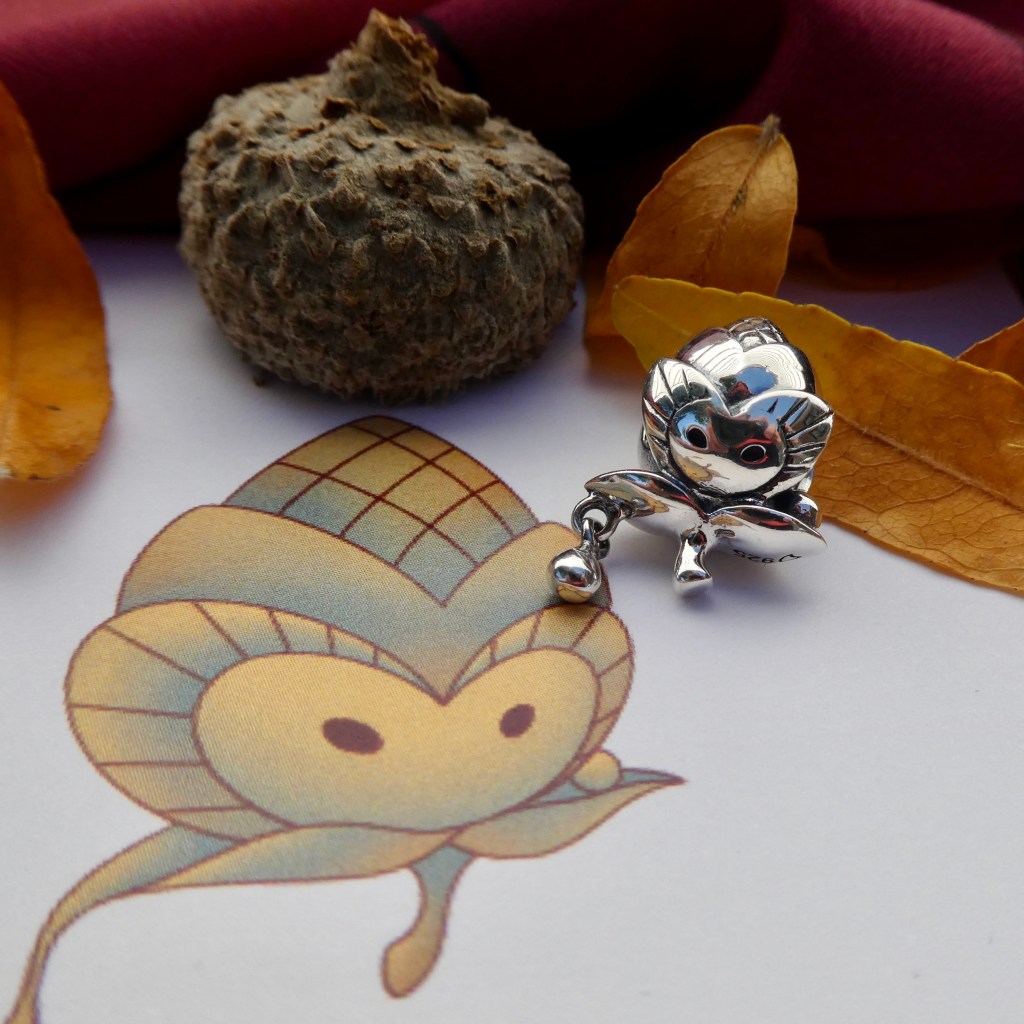 Here we have little Atlas, a pine cone fairy. This bead is very interesting in that the tiny butterfly can hang down loose, or attach to the pine cone. The butterfly is magnetic, according the the description on the Moress website. How brilliant!