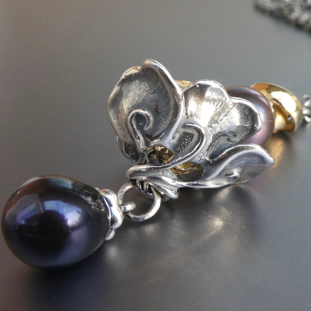 Greetings! I have a selection of pieces from the New Wisdom collection to show you and I think they are truly delightful. I’m so happy to see new silver flowers designed by Søren Nielsen. Let’s start with the gorgeous Clarity Flower Pendant ($83 USD/$115 CAD). On a Fantasy Necklace, it appears to be gracefully unfolding and envelops a small bead or pearl. I found that it needs a bead in order for it to sit properly.