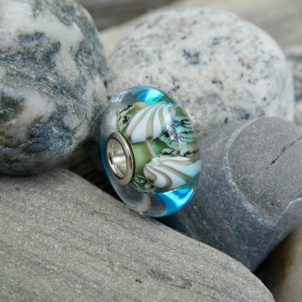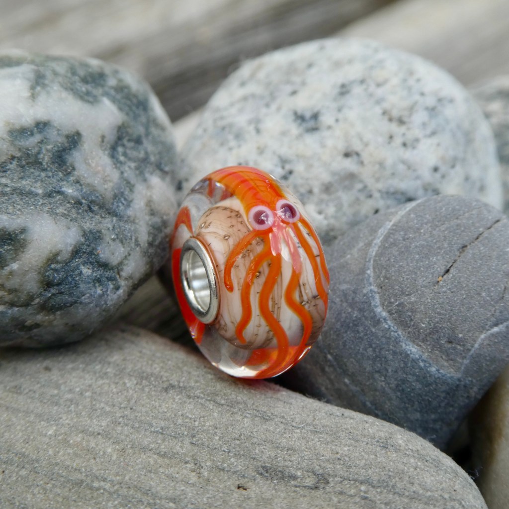 Jolly Jellyfish blends in with the above beads with its blue and white colouring. Be carefree but not careless.