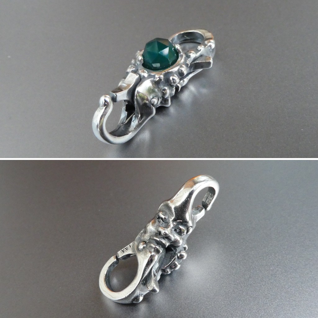 On one side, get help from Santa’s elf. On the other side, feel comforted by the Green Onyx that has the power to relieve worries, tension and stress.
