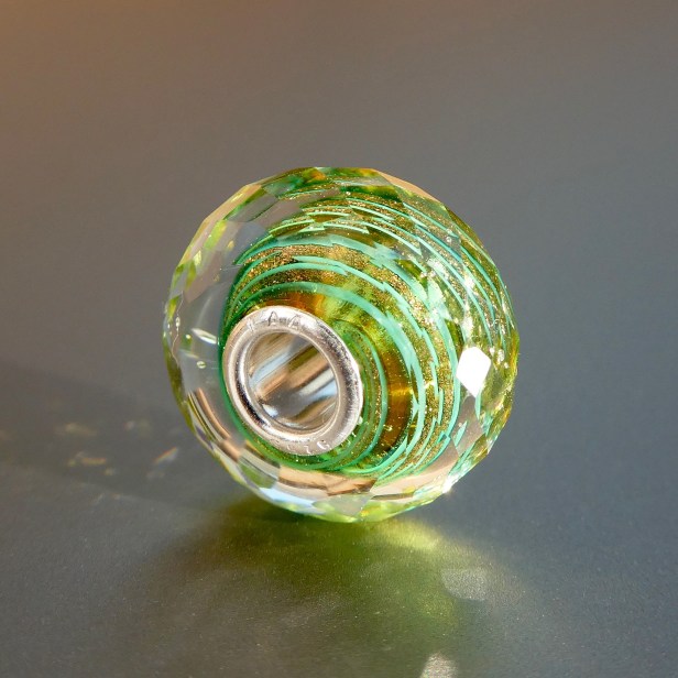 I had a really hard time getting a good picture of the Faceted Green Goldstone, designed by Lise Aagaard. It’s been so cloudy and rainy lately, so I’ll have to wait for a sunny day to try again. It costs $61 USD/ $74 CAD. It is pictured below in the middle, at the bottom of the bracelet.