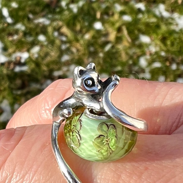 Trollbeads has a new ring, called the Cat at Ease Fantasy Ring. Like previous fantasy rings, it’s meant to be worn with a bead underneath. This style is very comfortable and I always feel like they fit quite securely. The silver ring itself was designed by Kristian Krysfeldt and costs $127 USD/$150 CAD. I think it’s quite sweet!