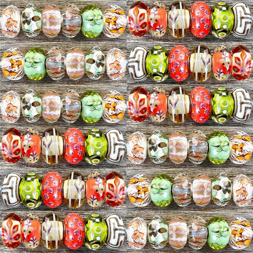 Moving along to the Peaceful Garden Kit, this one I find to be absolute perfection. As a kit it works so beautifully together and then each bead also works well with older beads. I look forward to spending more time with this kit. Below left to right, the beads are called Tiger Lily, Seeds of Joy and Peace of Mind.