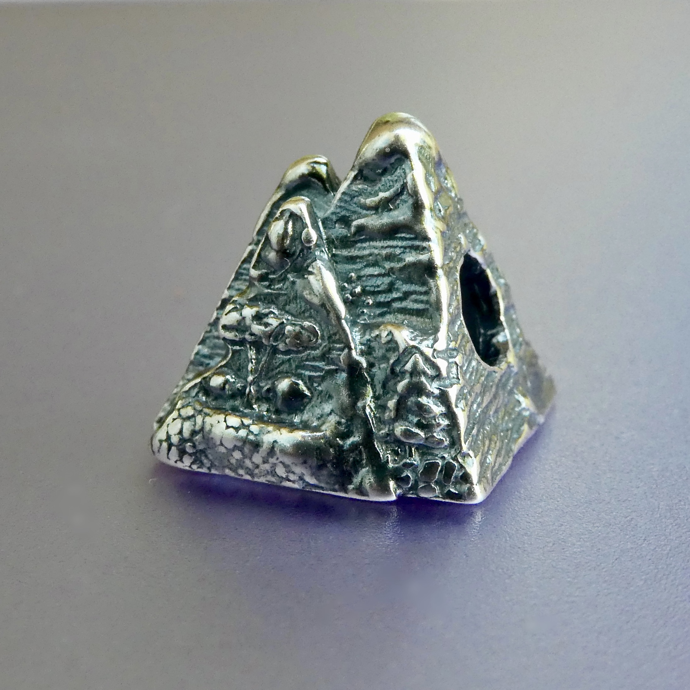 Moving on to the Mountain View release, in my opinion the star of the show is the True Peak bead. I really like how realistic it is, with the snow capped peaks, the little tree and especially the teeny tiny house. It is hollow and open bottomed, so you can fit one or two dangles inside. Here are two different views of the True Peak bead.