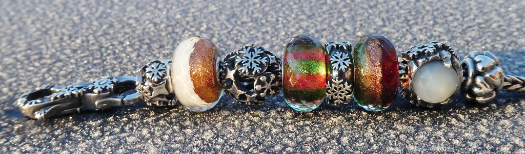 a truly beautiful set of silver and glass beads, I love the two dark ones with shimmer the best, also all the silver beads with snowflakes. Thanks for sharing. MaLa