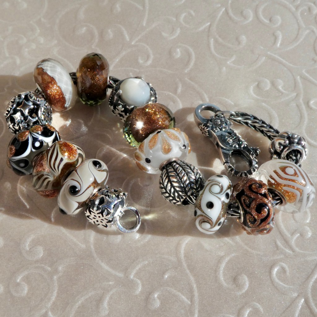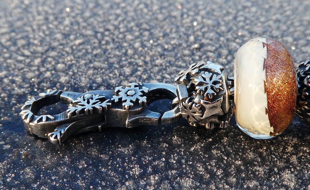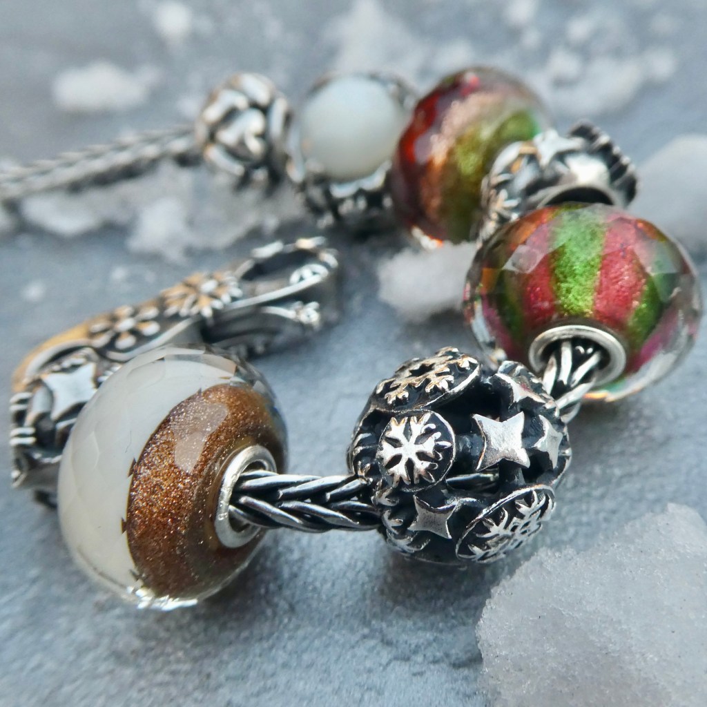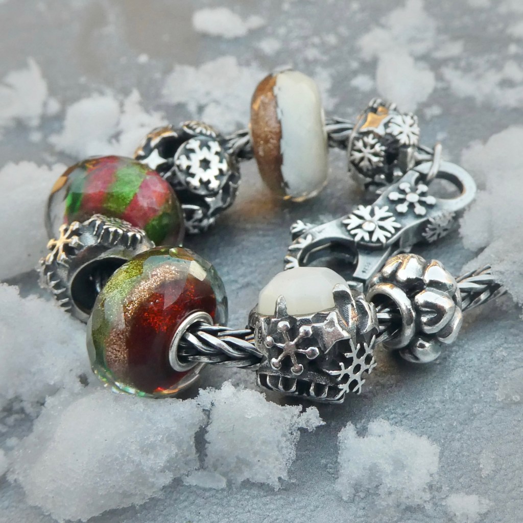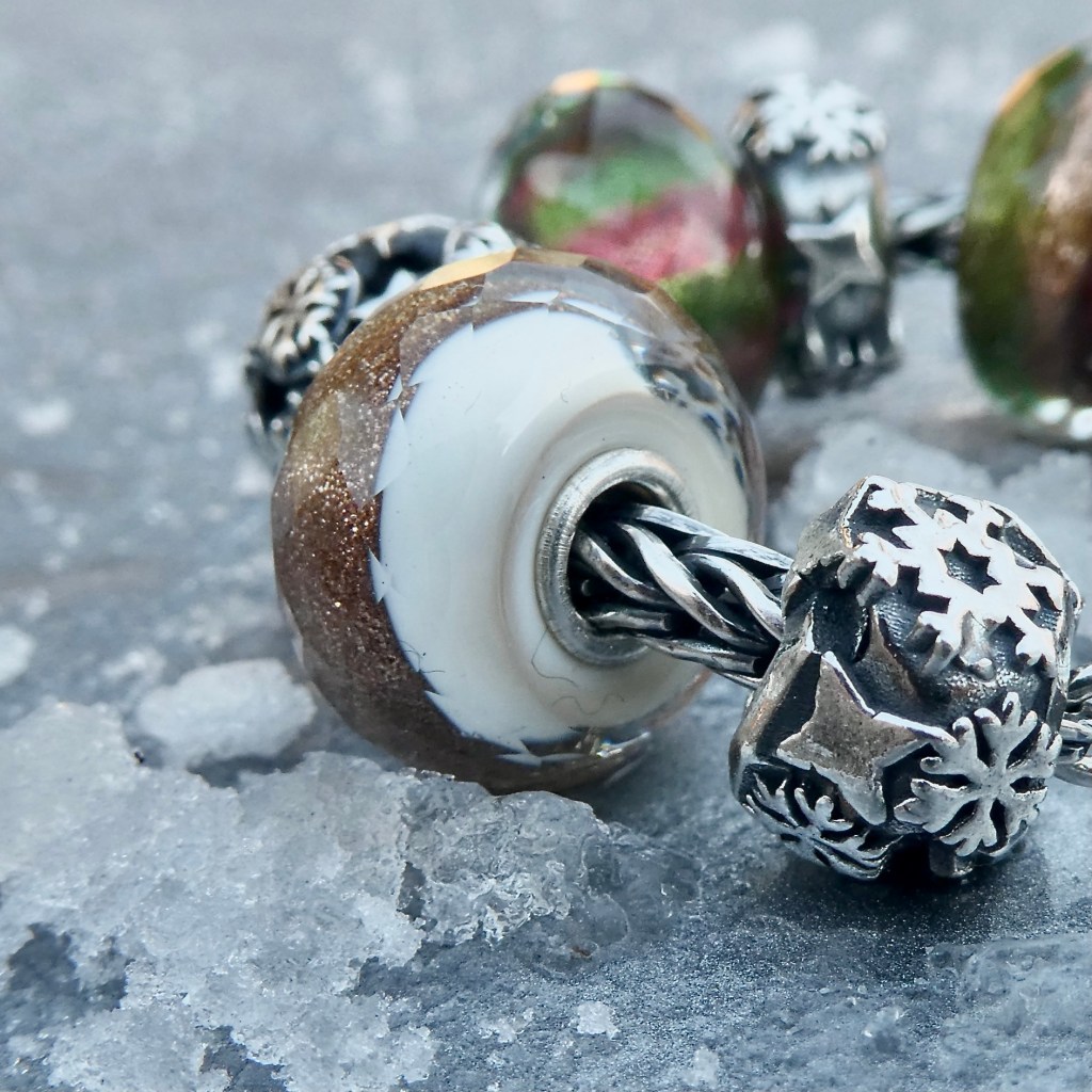 Below, beside the Stay Together Clasp are the Snowflakes Bead ($50 USD) and Winter Clouds ($61 USD). Again, I can picture the small Snowflakes Bead in multiples. The Winter Clouds Bead has that delicious gingerbread look reminiscent of winter glass beads of past years.