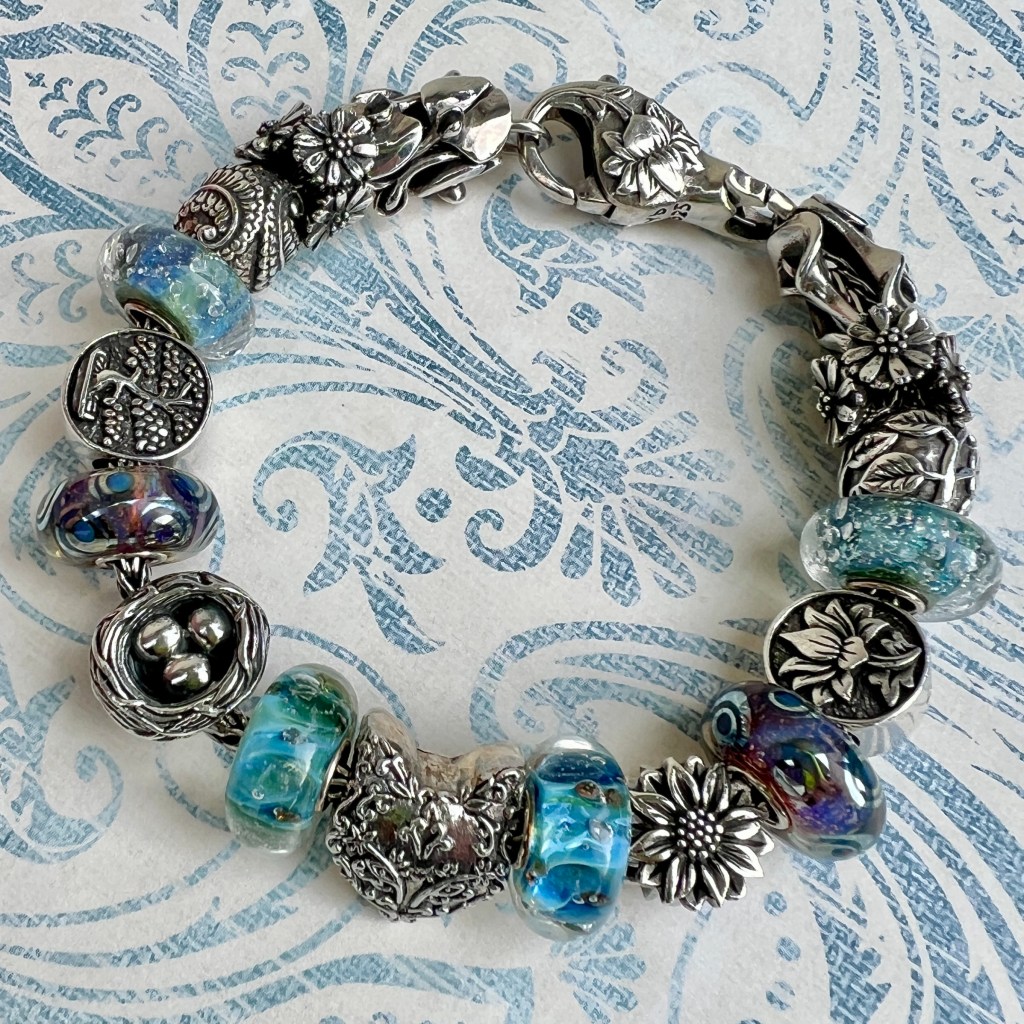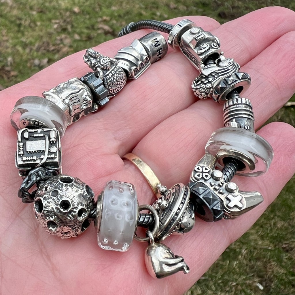 For the first time in 8 years I went on a trip (Disney World) and didn’t take any beads or bracelets with me. I knew I would be wearing a MagicBand the whole time, so really, there was no point. This weekend I had some free time and looked through my bead boxes and wondered what I could do to make more use out of the many gorgeous beads I have. I’ve been getting samples and doing this blog since 2016, so there are many beads just sitting around, and I feel a bit sad for them! I don’t build bracelets every day anymore, maybe just once or twice a week. So, I made up a bunch of ‘grab and go’ bracelets that I hope to keep permanently. Fortunately I have quite a few Trollbeads chains and locks, so the basics were already there. I’m not going to list what all these beads are but if you have any questions I can try to help.