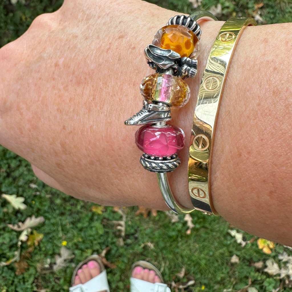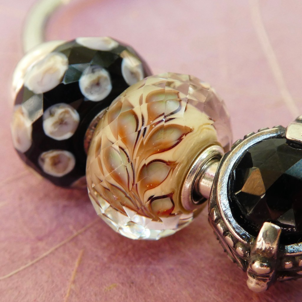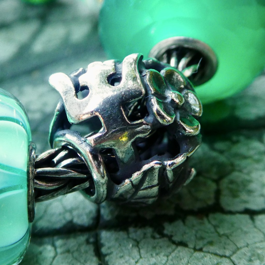 As always with Trollbeads, I like to see what older beads will work with the newer ones. I think the faceted beads from Autumn 2017 work really well with Swaying Leaves. In the middle is the new Symphony of Strength.